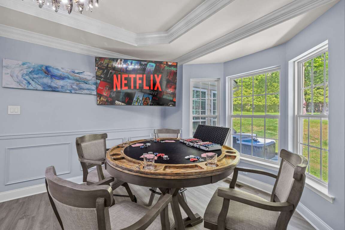 Step into sophistication and unwind in style amidst the serene beauty of the Pocono Mountains. Cloud Nine Estate is a luxury getaway where every detail is crafted to impress. Enjoy a game room full of thrills, a private theater with tiered reclining seats, a soothing hot tub, rejuvenating sauna, & a lavish master suite. Whether youβre here to relax or entertain, comfort & elegance await at every turn. Book now for an unforgettable escape filled with leisure and luxury! Hosted by Wander Home. SPECIAL AMENITIES & SPACES: β Self-check-in with keyless entry - Access code will be sent out once the rental agreement is signed Blue Mountain Lake community amenities: β Drive, bike, or walk within the community. You will need a car to go anywhere outside of the community. Uber and taxi cabs are available in the area, but can have long wait times or be difficult to find. The rental agreement will be sent to you once the reservation is accepted. Your booking is only confirmed once it is signed. Kindly complete it within 24 hours to secure your reservation. If not signed within the deadline, your booking may be cancelled with no refund. β We are here for you during your stay, but our level of interaction is up to you. We are only a phone call or message away. You and your party will be able to self check-in upon arrival.
