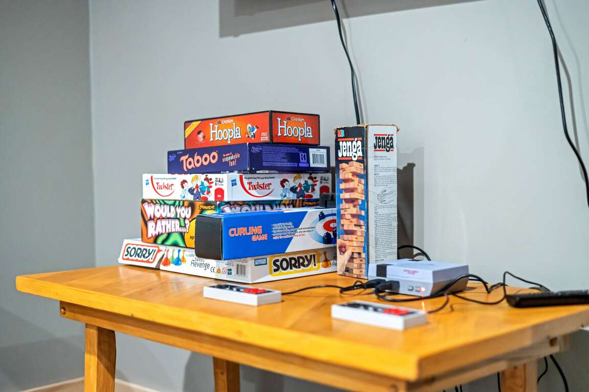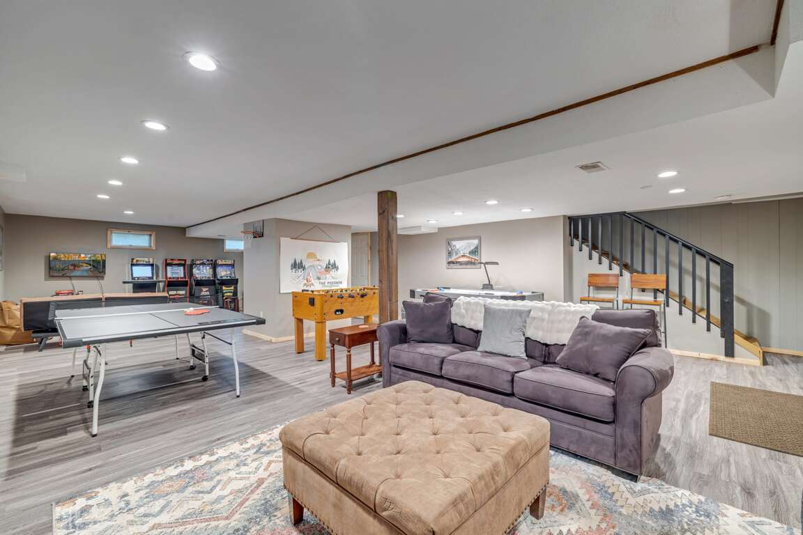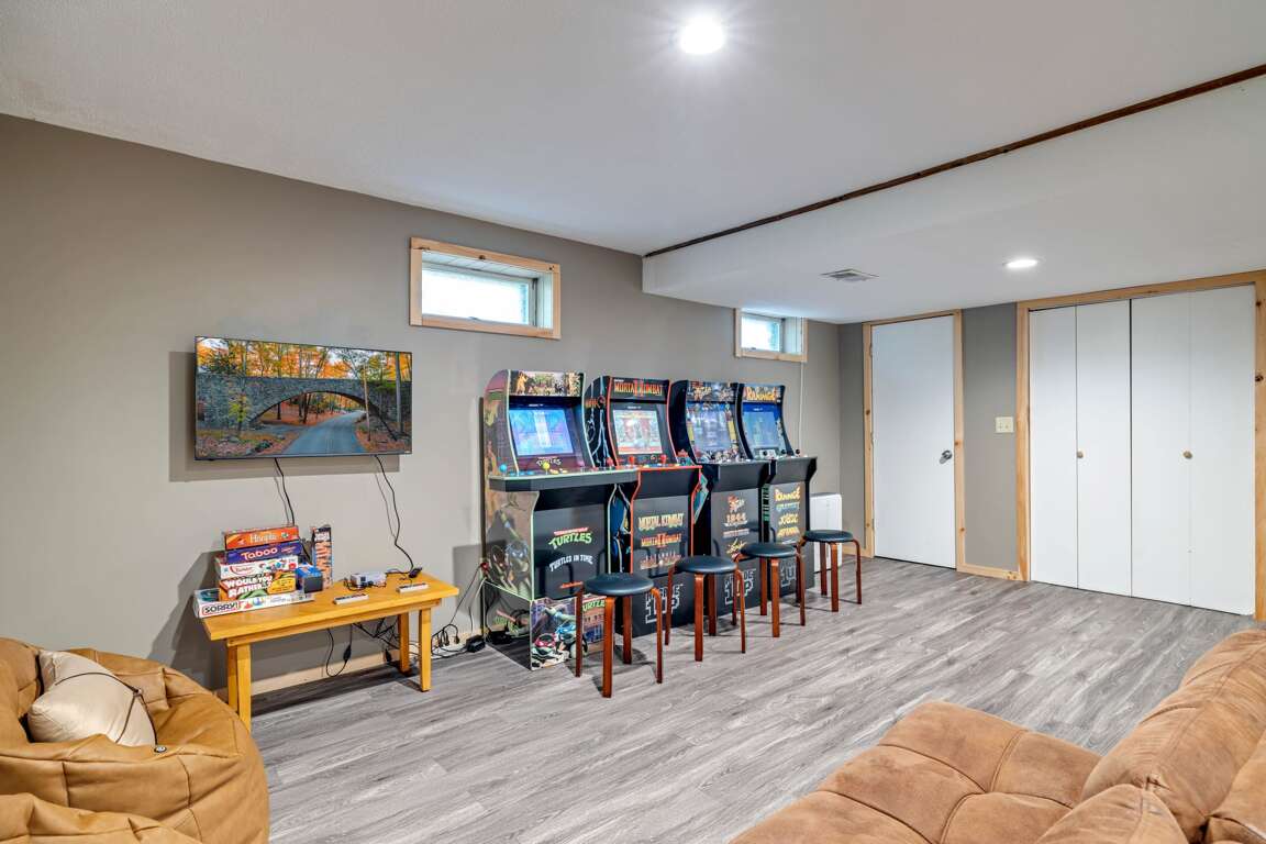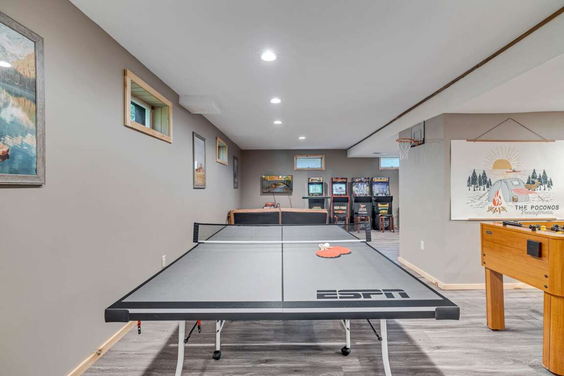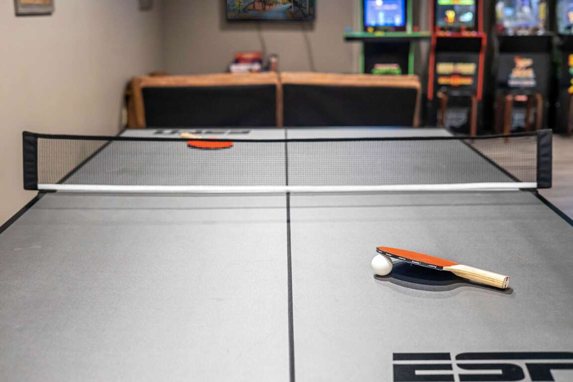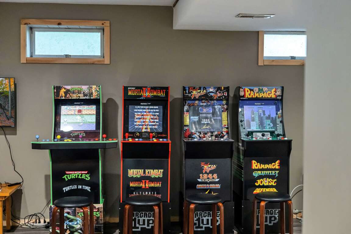 β Game + Arcade Room w/ ping-pong, air hockey, foosball, arcade games (Teenage Mutant Ninja Turtles, Final Fight, Mortal Kombat II, Rampage, & more!) & classic video game console