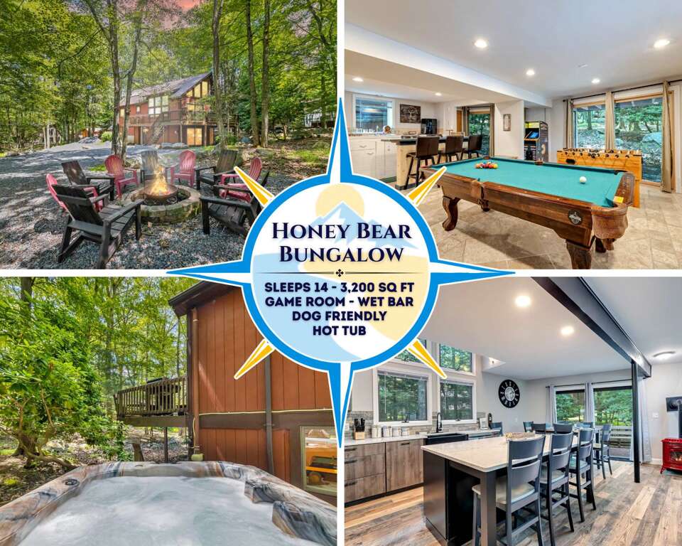 Discover the perfect Poconos getaway at Honey Bear Bungalowβa dog-friendly retreat packed with fun and comfort! Unwind in the private hot tub, challenge your crew in the game room with pool, foosball, and arcade games, or gather around the fire pit for starlit evenings. Ideal for families and friends, this cozy spot is located in Lake Harmony, close to all the adventure the Poconos has to offer. Book your stay today and start making unforgettable memories! Hosted by Wander Home. SPECIAL AMENITIES & SPACES: β Self-check-in with keyless entry - Access code will be sent out once the rental agreement is signed Enjoy Split Rock Resort's public amenities (see Other Things To Note section for rates): β Drive, bike, or walk within the community. Guests can easily bike to the lake, waterpark, a convenience store, and numerous restaurants. Alternatively, these amenities and shops are just a short 2-5 minute drive away. You will need a car to go anywhere outside of the community. Uber and taxi cabs are available in the area, but can have long wait times or be difficult to find. The rental agreement will be sent to you once the reservation is accepted. Your booking is only confirmed once it is signed. Kindly complete it within 24 hours to secure your reservation. β We are here for you during your stay, but our level of interaction is up to you. We are only a phone call or message away. You and your party will be able to self check-in upon arrival.