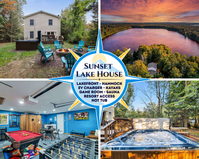 Wake up to lake views at Sunset Lake House, a private 4 bedroom lakefront retreat in the Poconos that sleeps up to 10. Relax in the hot tub or sauna, kayak directly from the backyard, or enjoy friendly competition in the game room. Gather around the fire pit for sโmores, dine on the deck, and cool off with full air conditioning. Guests also enjoy access to community pools and beaches. Perfect for families and groups seeking comfort, fun, and unforgettable sunsets. Hosted by Wander Home. ๐ Special Features โ Guests are welcome to use the lake and kayaks at your own risk. Do not allow children near the lake without adult supervision. Enjoy the Stillwater Lakes Civic Association community amenities (seasonal) in the middle of the Poconos: โ Drive, bike, or walk within the community. You will need a car to go anywhere outside of the community. Uber and taxi cabs are available in the area, but can have long wait times or be difficult to find. The rental agreement will be sent to you once the reservation is accepted. Your booking is only confirmed once it is signed. Kindly complete it within 24 hours to secure your reservation. If not signed within the deadline, your booking may be cancelled with no refund. โ We are here for you during your stay, but our level of interaction is up to you. We are only a phone call or message away. You and your party will be able to self check-in upon arrival.