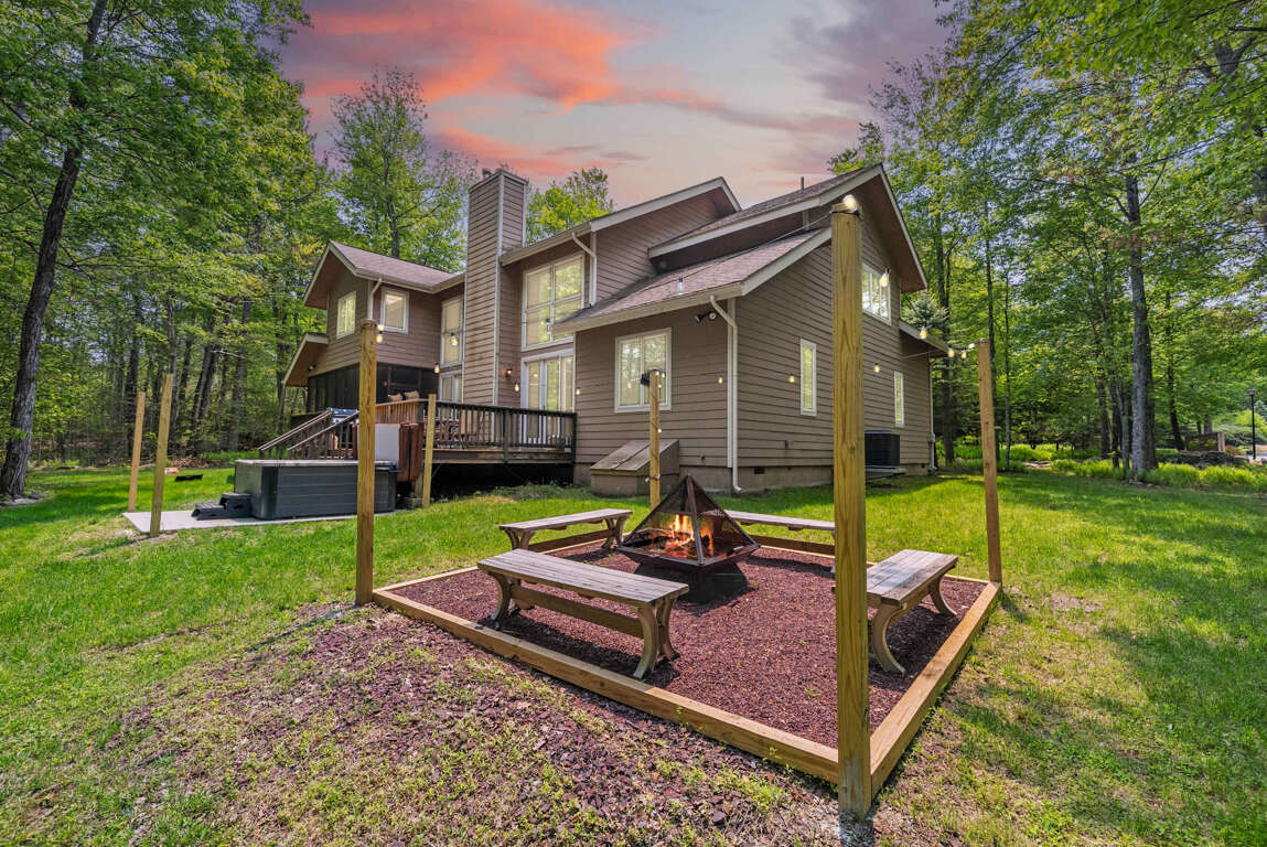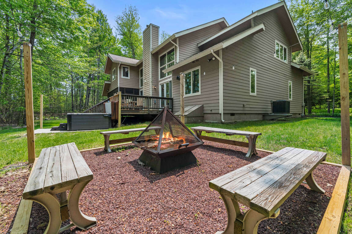Experience the comfort of this spacious 5-bedroom vacation rental in Lake Harmony, PA. Fully equipped with a game room, hot tub, and a fire pit for unforgettable holiday moments.