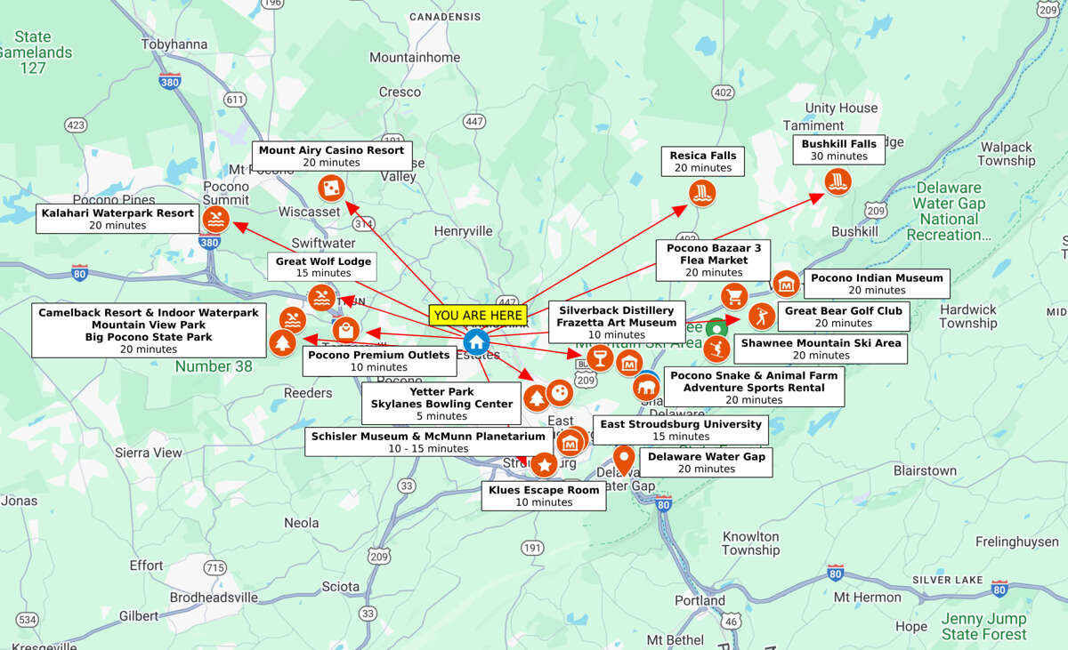 β Close to major Poconos attractions - ski resorts, waterfalls, waterparks, casinos, outlet stores & more!
