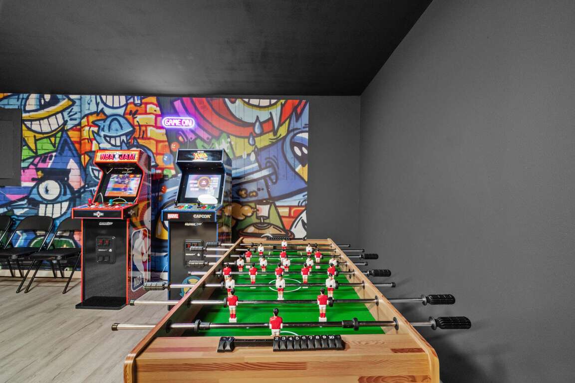 β Game room w/ poker table, foosball & arcade games (NBA Jam & X-Men)