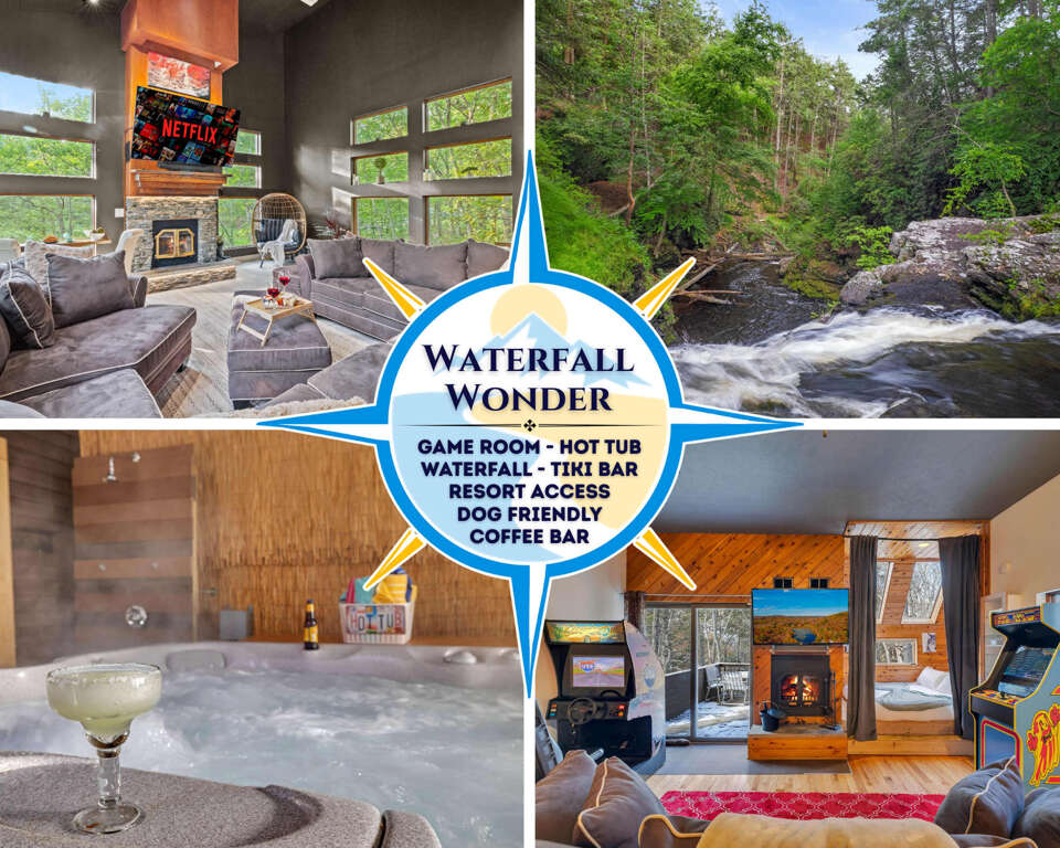 Welcome to Waterfall Wonderβyour dog-friendly waterfront escape with stunning views of a cascading waterfall. This unforgettable retreat is packed w/ entertainment and relaxation: play arcade games, shoot pool, or lose yourself in the VR world w/ our Oculus headset. Unwind at the tiki bar, soak in the hot tub, or gather around the fire pitβall with the soothing sounds of the falls nearby. Perfect for families or friends. Reserve your stay today for a one-of-a-kind getaway! Hosted by Wander Home. SPECIAL AMENITIES & SPACES: β Self-check-in with keyless entry - Access code will be sent out once the rental agreement is signed Saw Creek Estates amenities: β Drive, bike, or walk within the community. You will need a car to go anywhere outside of the community. Uber and taxi cabs are available in the area, but can have long wait times or be difficult to find. β The rental agreement will be sent to you once the reservation is accepted. Your booking is only confirmed once it is signed. Kindly complete it within 24 hours to secure your reservation. If not signed within the deadline, your booking may be cancelled with no refund. β We are here for you during your stay, but our level of interaction is up to you. We are only a phone call or message away. You and your party will be able to self check-in upon arrival.