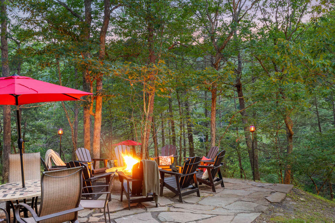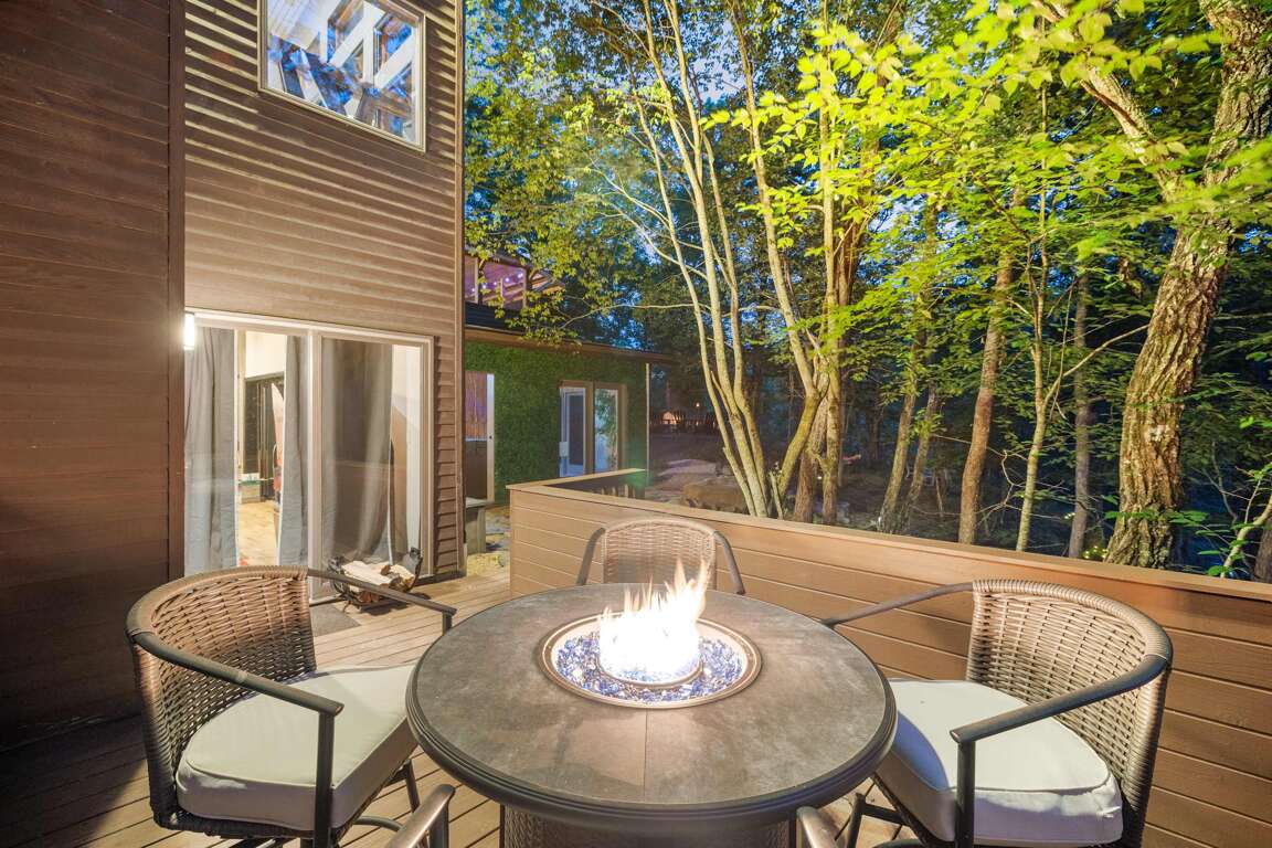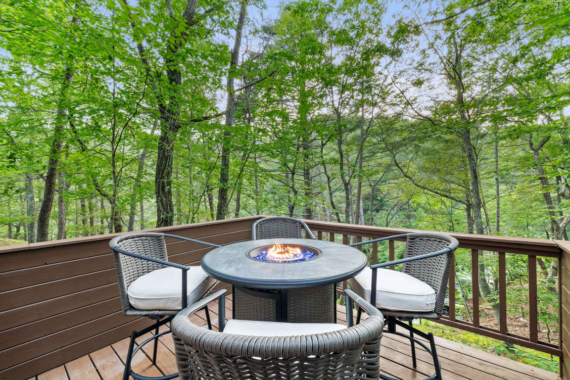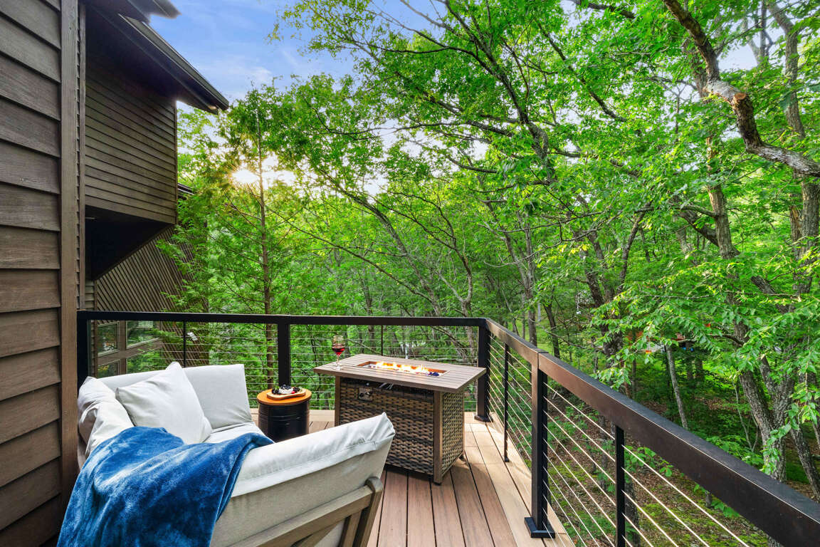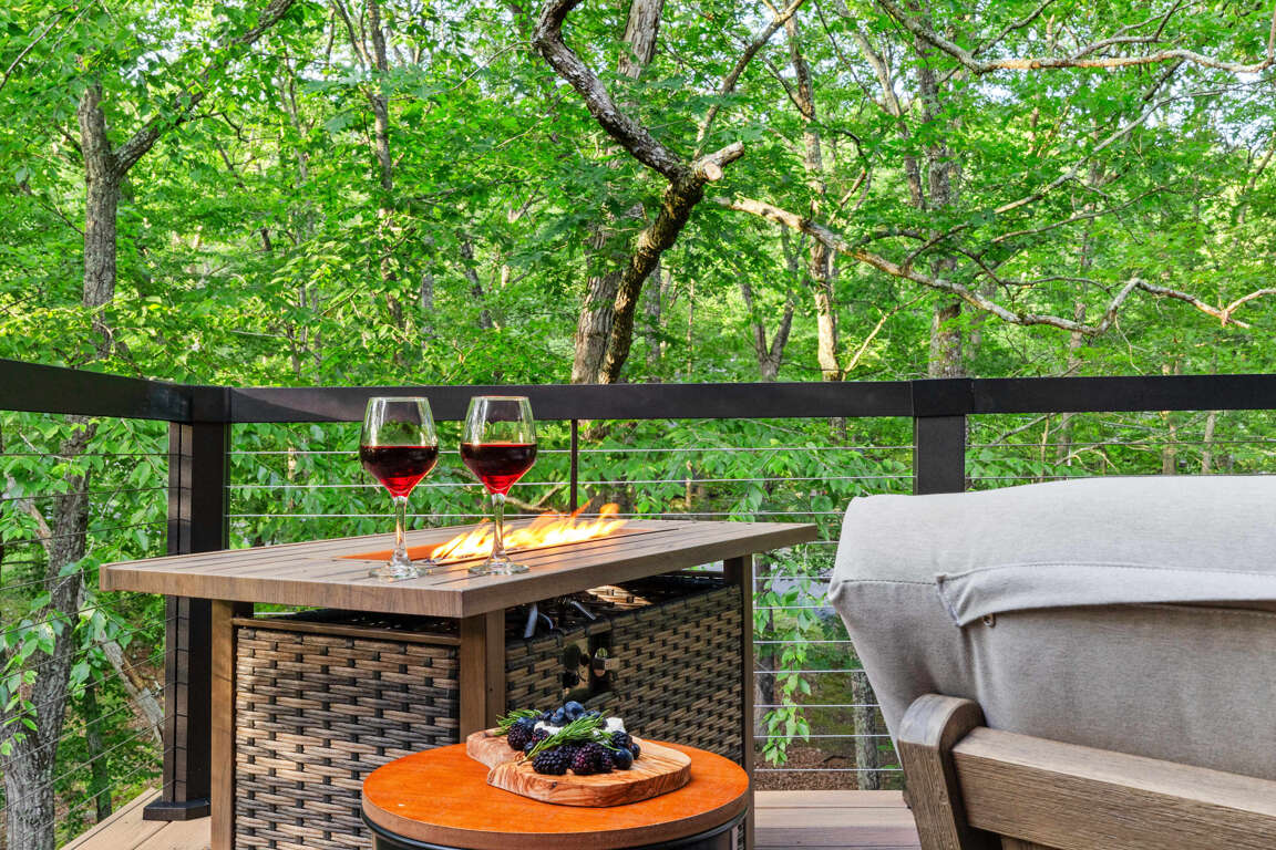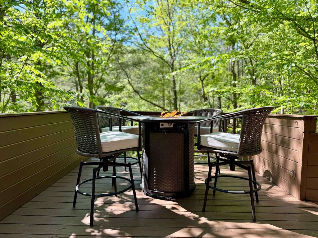 β Outdoor decks & seating + fire table w/ nature views
