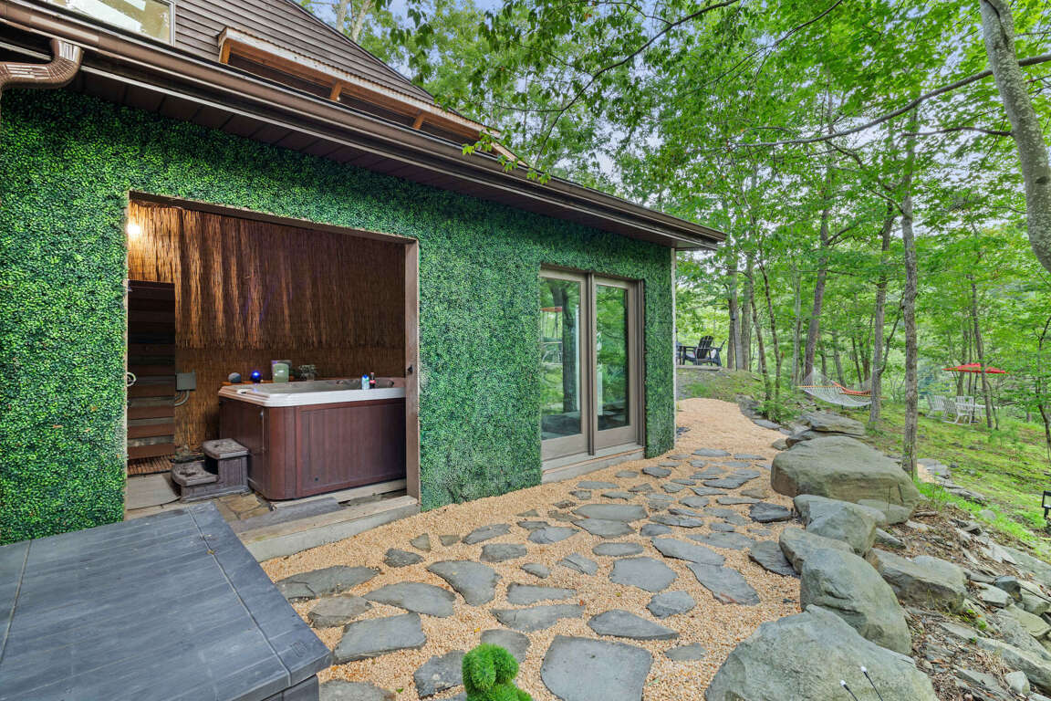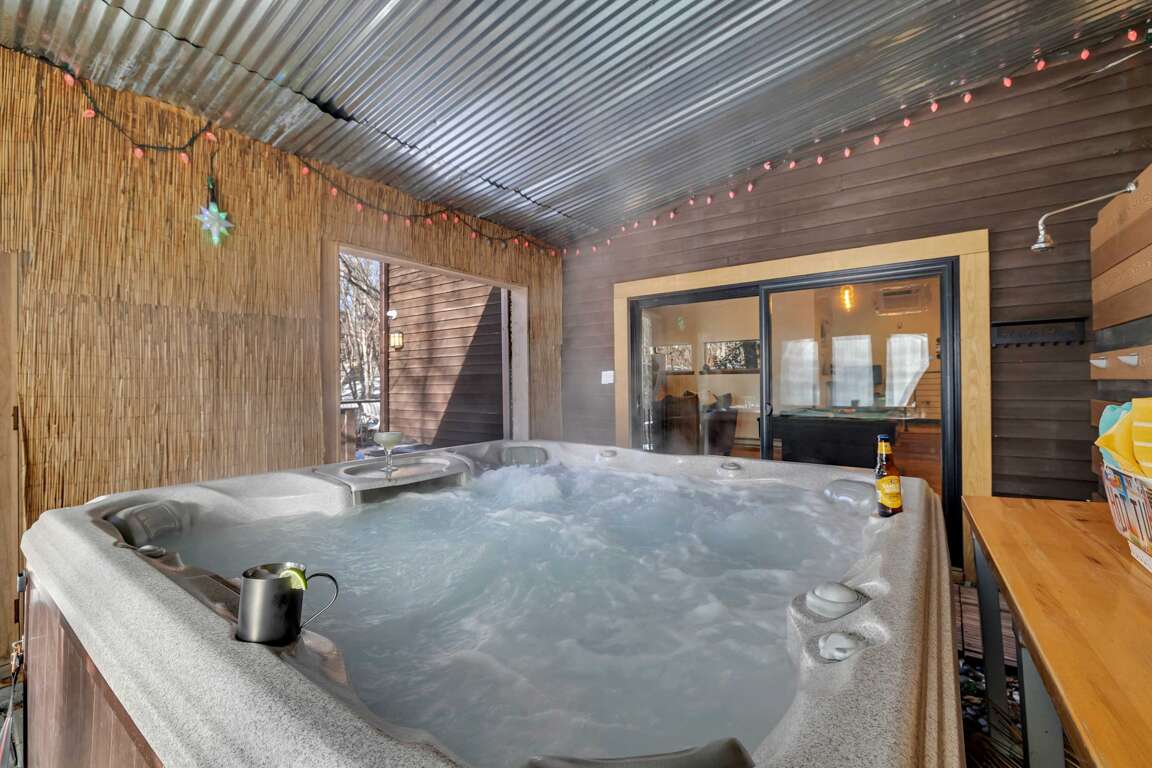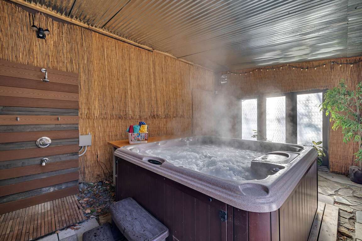 Immerse yourself in the serene atmosphere of this Bushkill, PA property offering 4 bedrooms, pet-friendly accommodations, and delightful amenities like a hot tub.