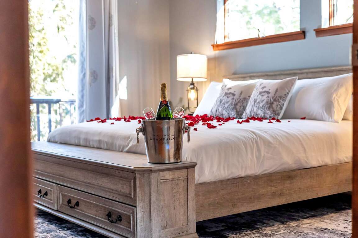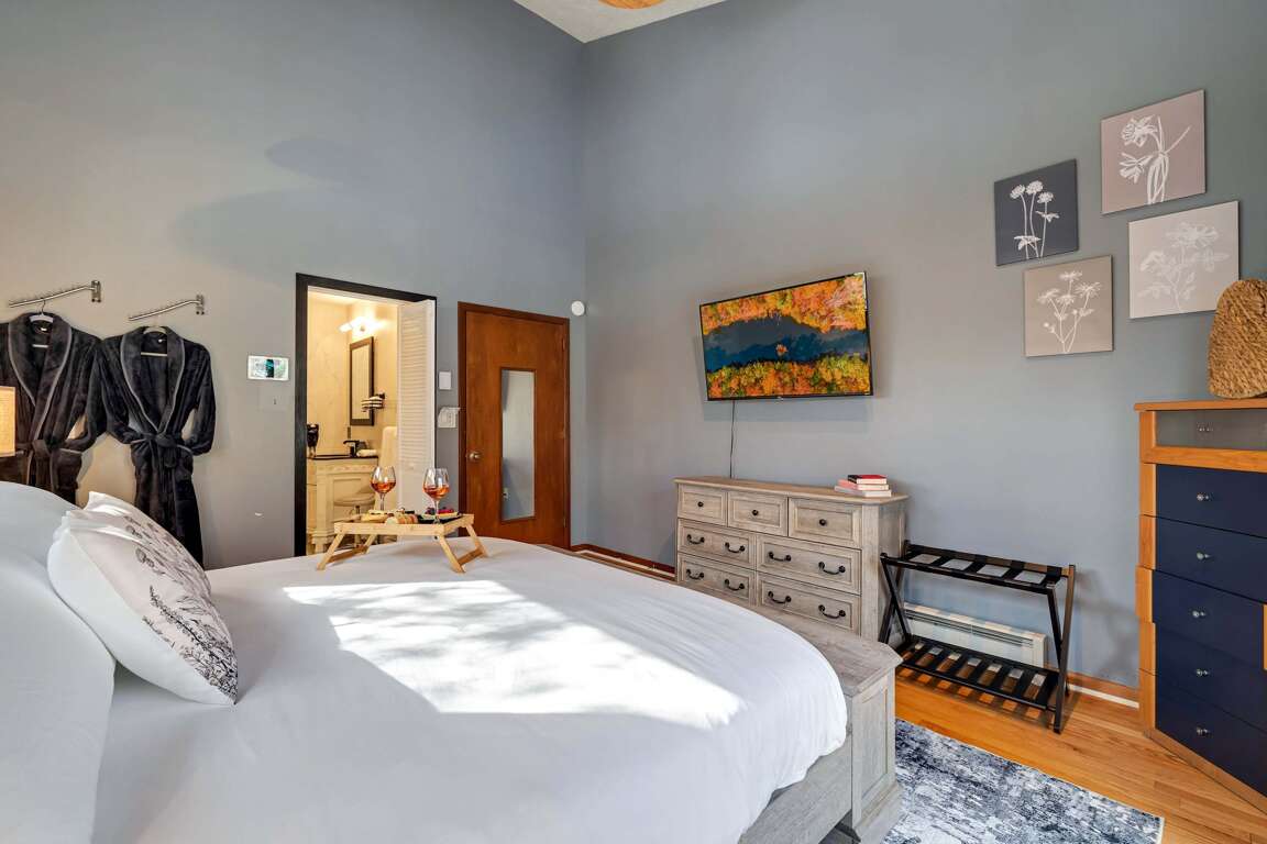 β Master bedroom suite w/ king bed, full bathroom & private deck