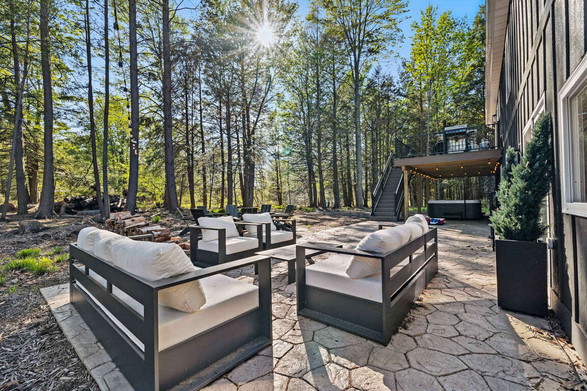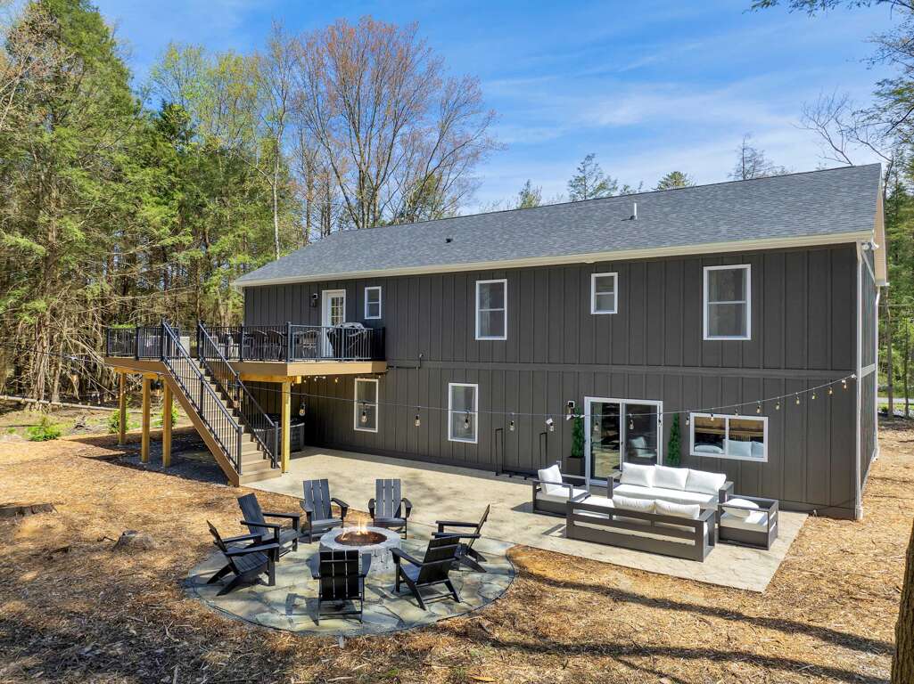 Located in serene Blakeslee, PA, this 6 bedroom house boasts comforts of home with a hot tub, firepit, and a game room, making this an ideal vacation rental or fun getaway: The Driftwood