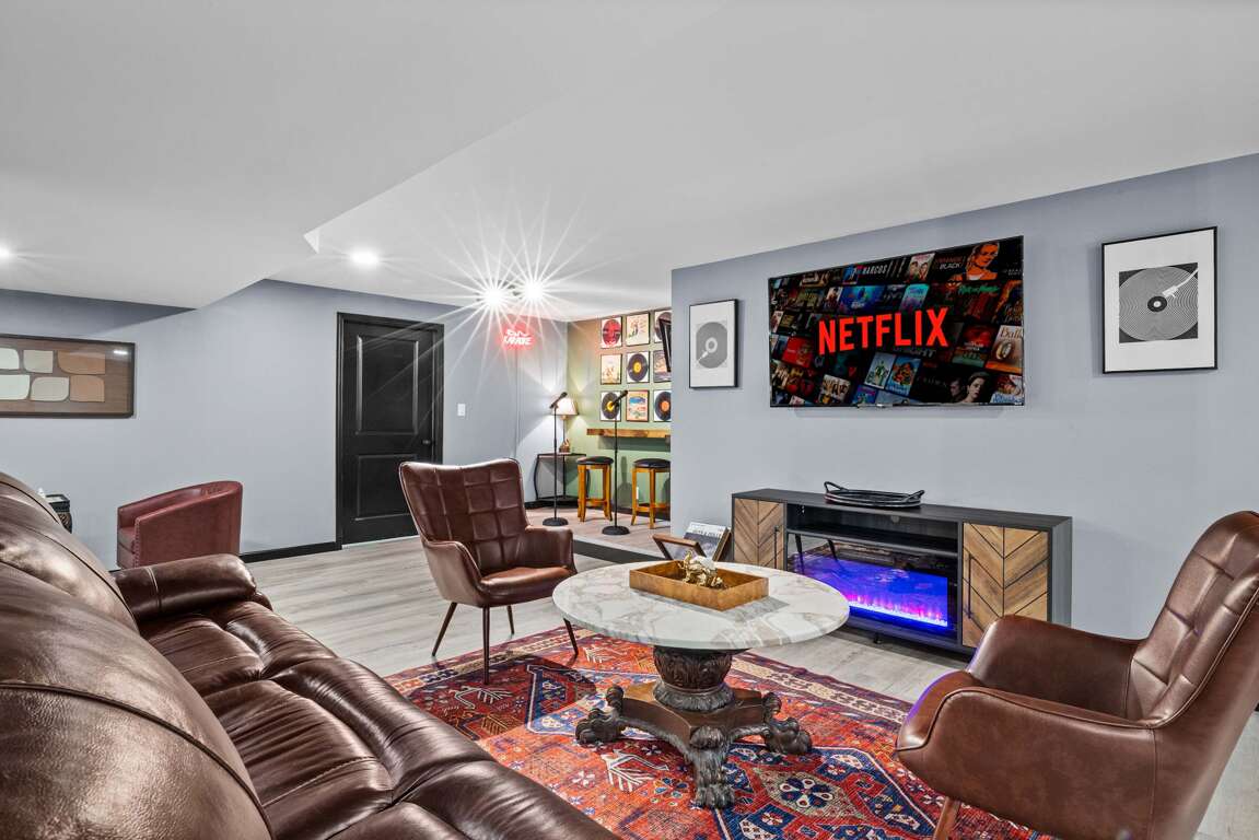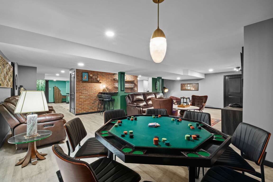 ● Lounge w/ dry bar, electric fireplace, poker table & karaoke stage!