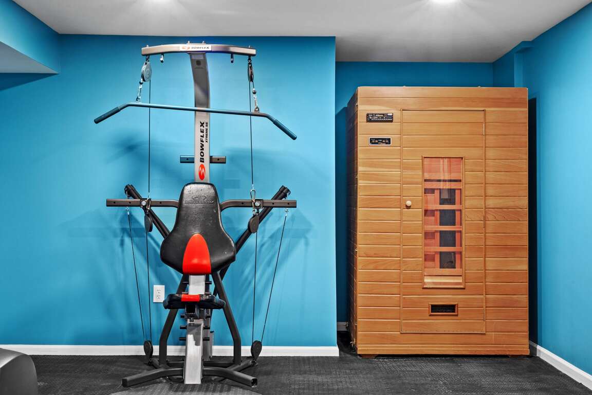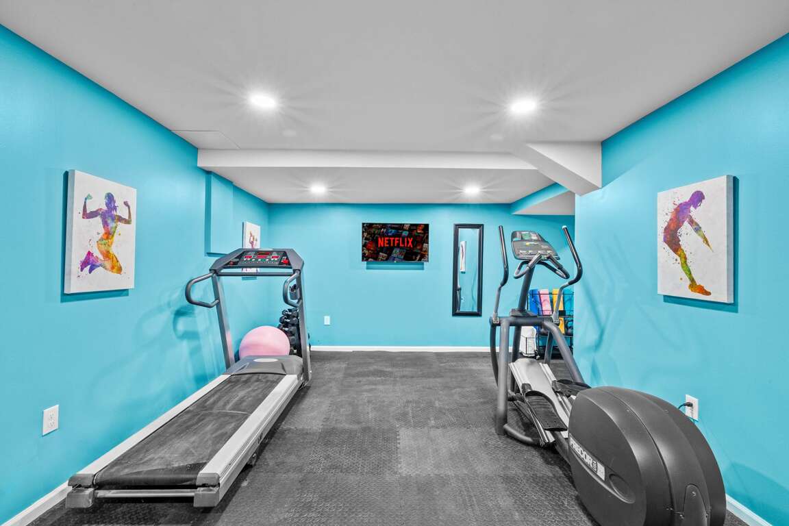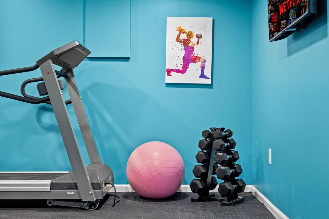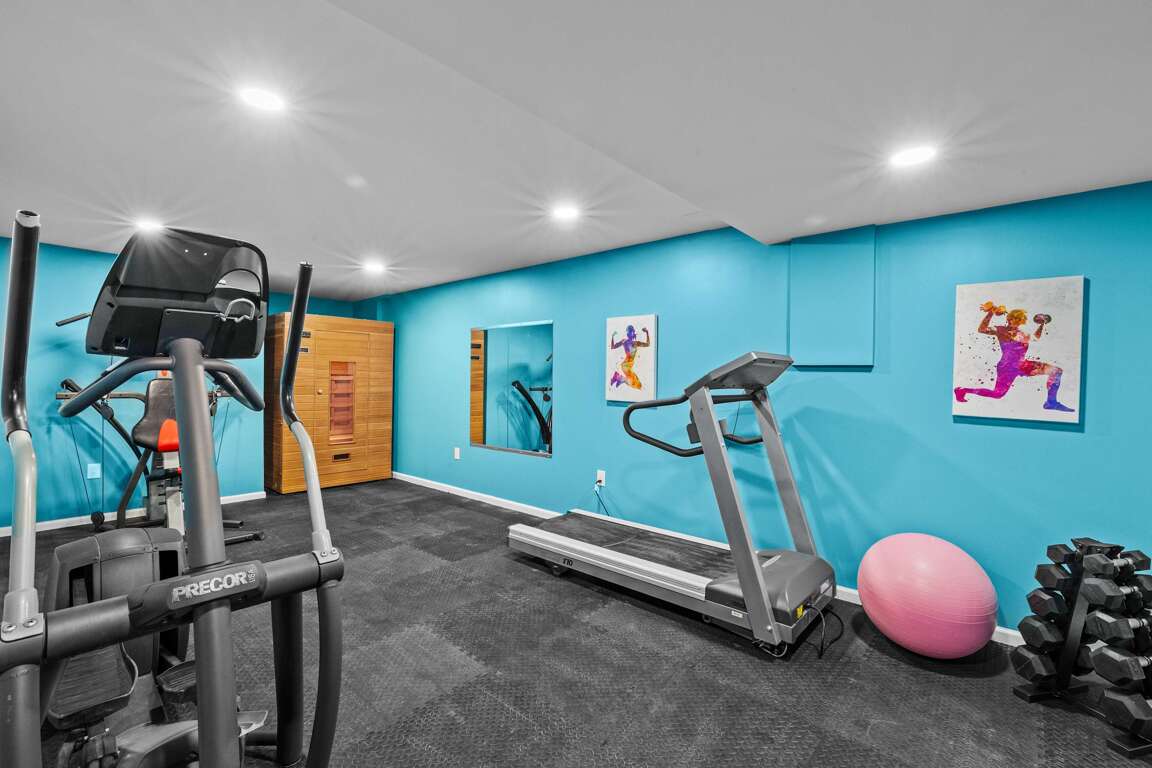● Gym w/ treadmill, elliptical, Bowflex, dumbbells & yoga mats