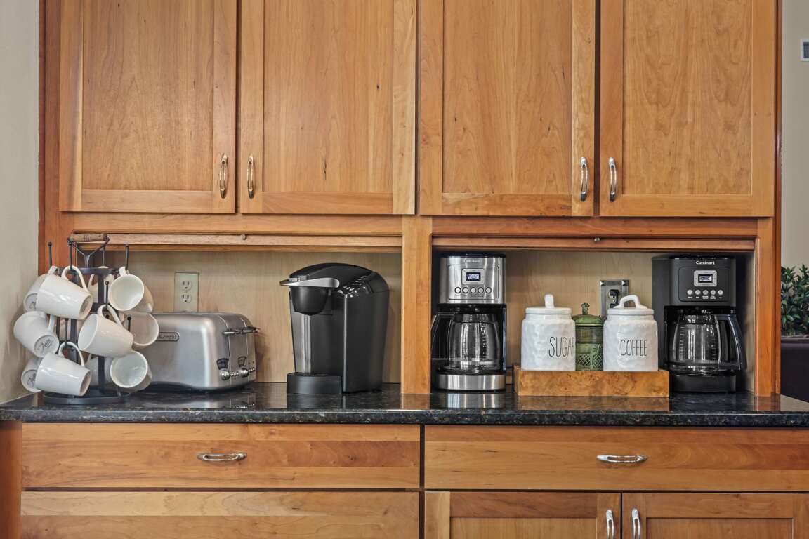 ● Coffee pots & kettle w/ coffee grounds & tea bags