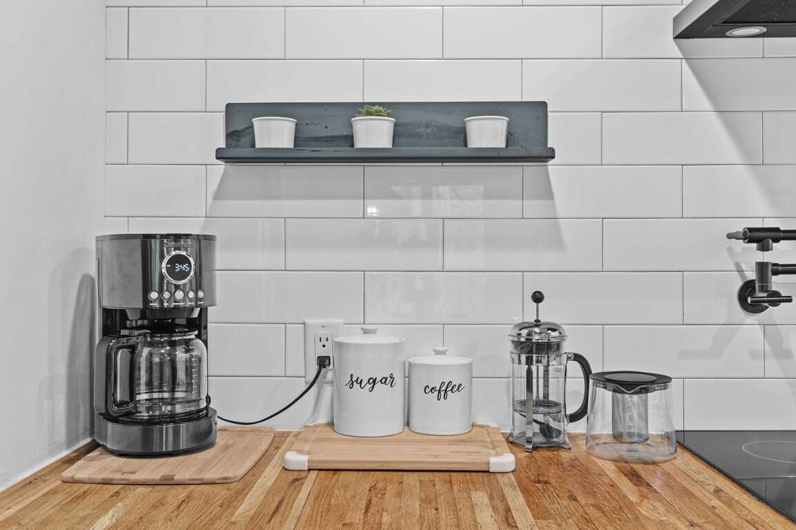β Coffee pot, French press & kettle w/ complimentary coffee and tea