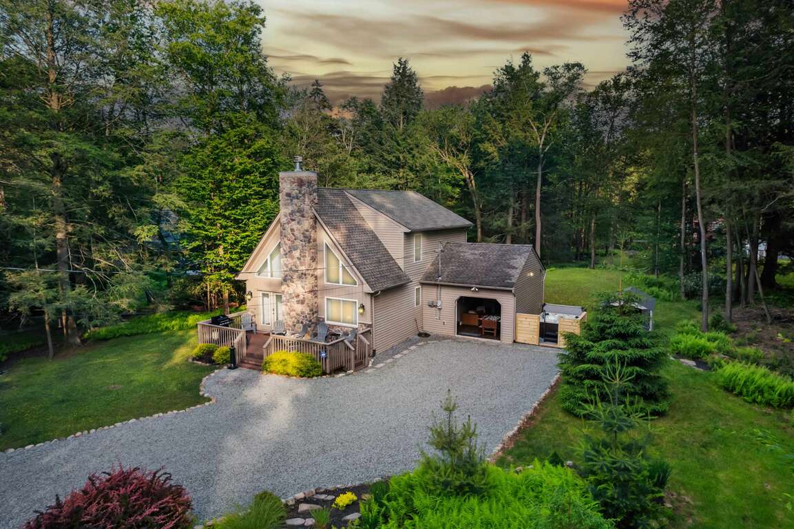 A three-bedroom house in Albrightsville, PA, with a game room and hot tub; the perfect vacation rental for a fun-filled escape.