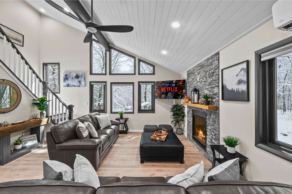 Discover Perryβs Peake, a stylish 5-bedroom Pocono retreat - perfect for families and friends seeking adventure & relaxation. Soak in the private hot tub under the stars, gather around the crackling stone fire pit, & create gourmet meals in the modern kitchen. The game room offers endless fun with pool, foosball, air hockey, & pop-a-shot basketball. Just minutes from top Pocono attractions, this getaway blends modern comfort, playful amenities, & a hint of mountain magic. Hosted by Wander Home. SPECIAL AMENITIES & SPACES: β Self-check-in with keyless entry - Access code will be sent out once the rental agreement is signed 5 minute drive to: β Drive, bike, or walk within the community. You will need a car to go anywhere outside of the community. Uber and taxi cabs are available in the area, but can have long wait times or be difficult to find. β The rental agreement will be sent to you once the reservation is accepted. Your booking is only confirmed once it is signed. Kindly complete it within 24 hours to secure your reservation. β We are here for you during your stay, but our level of interaction is up to you. We are only a phone call or message away. You and your party will be able to self check-in upon arrival.