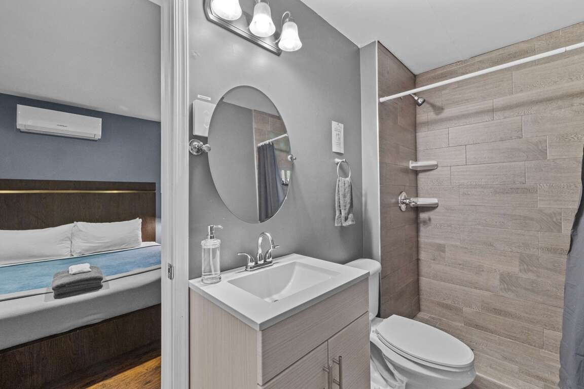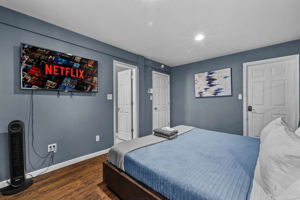 β Master bedroom suite w/ king bed, full bathroom, & TV