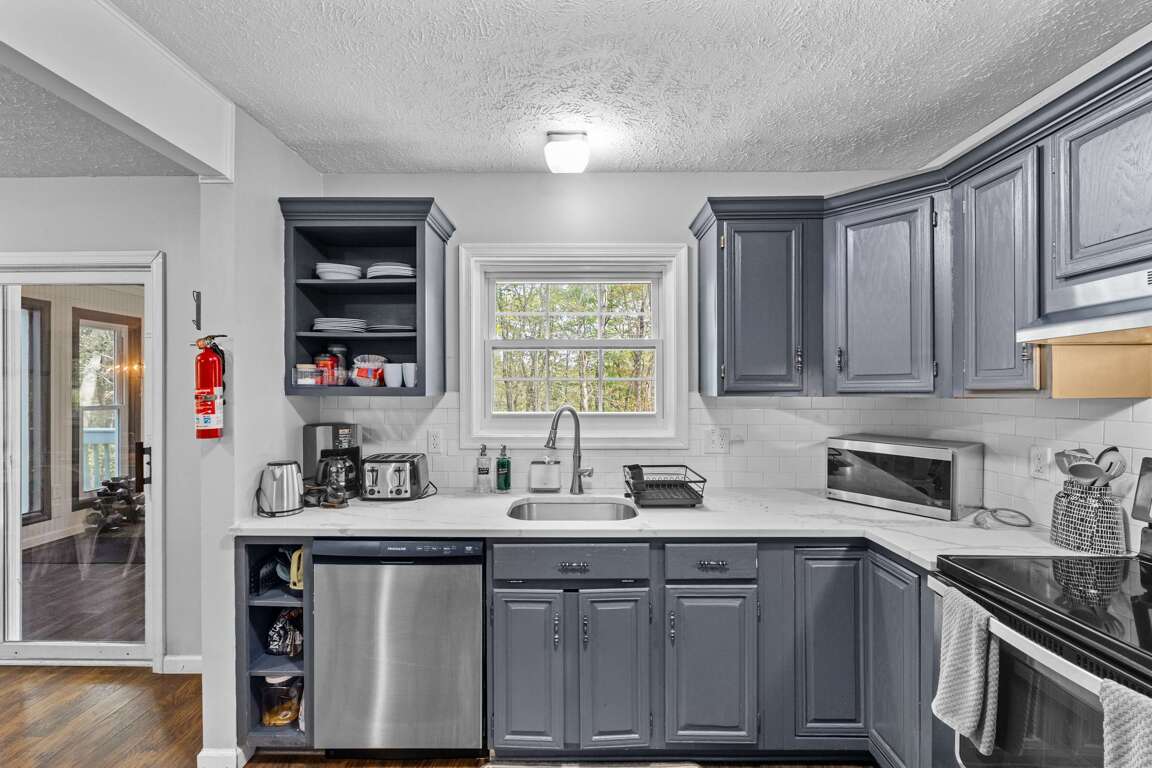 β Stainless steel appliances: microwave, dishwasher, 4-burner electric stove/oven, range vent hood