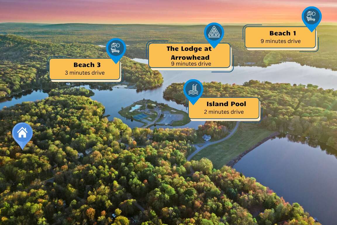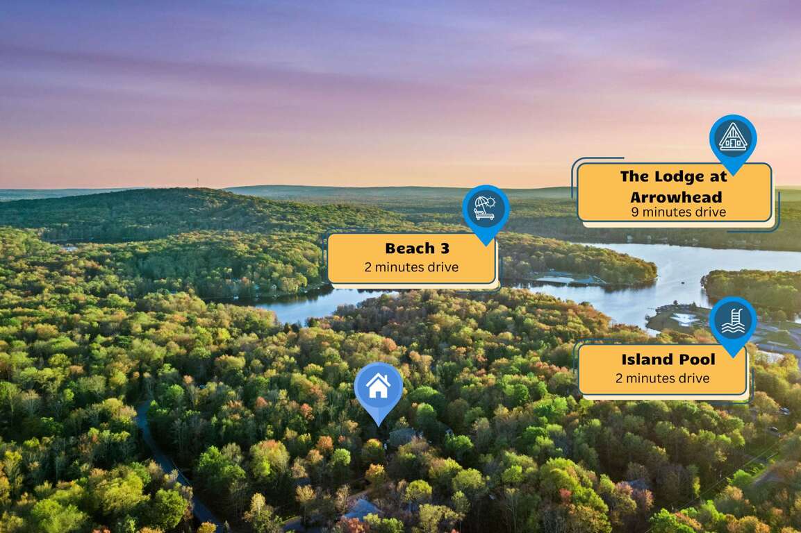 Lazy Bear Lodge is the perfect escape for families, friends, and dog lovers seeking fun and adventure in the Poconos. Unwind in the hot tub, splash in the backyard creek, grill and dine on the deck, or relax by the fire pit under the stars. Inside, challenge your group to pool, stream movies on Fire TVs in every room, or curl up by the gas fireplace. With room for 10, modern comforts, and nearby Poconos attractions, this waterfront home makes every moment unforgettable. Hosted by Wander Home. SPECIAL AMENITIES & SPACES: β Self-check-in with keyless entry - Access code will be sent out once the rental agreement is signed Highly amenitized Arrowhead Lake Community in the Pocono Mountains: β Drive, bike, or walk within the community. You will need a car to go anywhere outside of the community. Uber and taxi cabs are available in the area, but can have long wait times or be difficult to find. β The rental agreement will be sent to you once the reservation is accepted. Your booking is only confirmed once it is signed. Kindly complete it within 24 hours to secure your reservation. β We are here for you during your stay, but our level of interaction is up to you. We are only a phone call or message away. You and your party will be able to self check-in upon arrival.