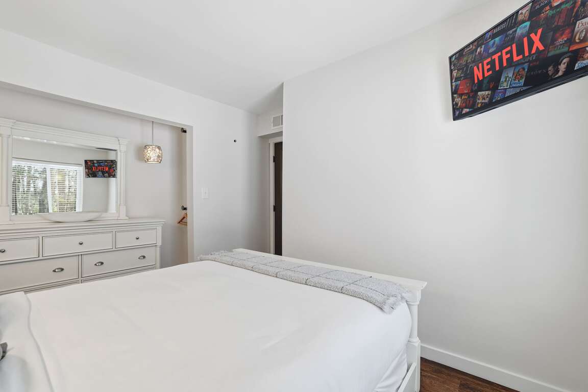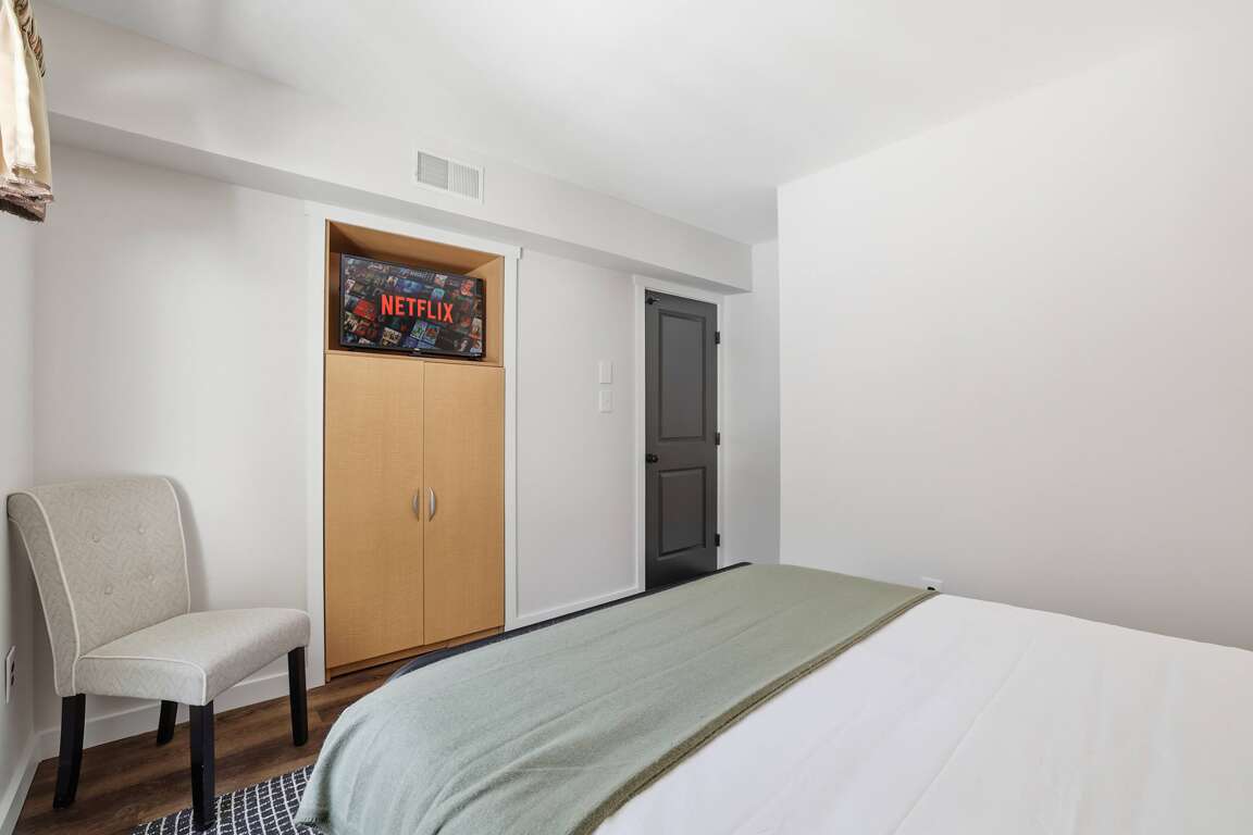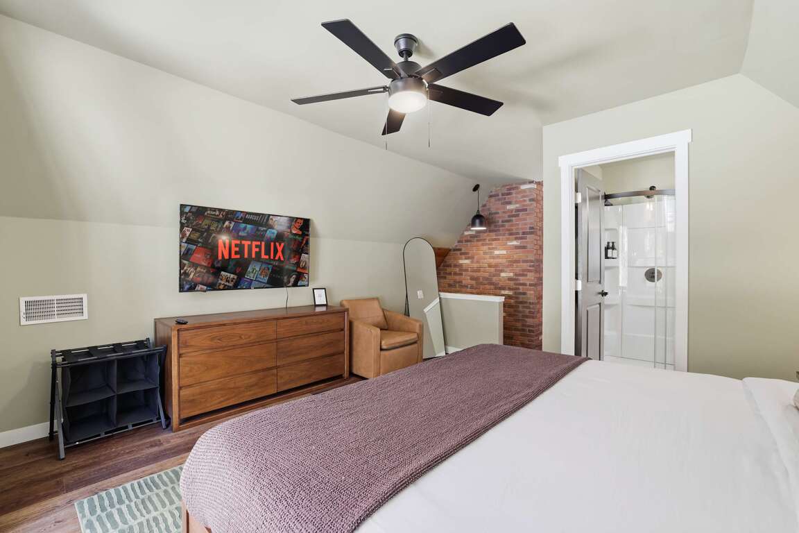 โ Bedroom 3 suite - king bed, full bathroom, dresser, TV