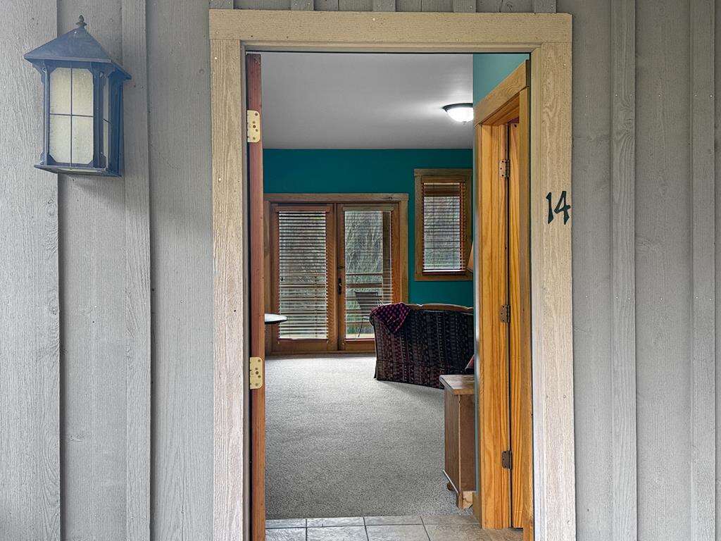 Fireplace Suite 14 is styled with warm wood accents, natural light, and comfortable furnishings—offering a homey space to recharge. A small dining table provides a perfect spot for morning pastries, travel planning, or a glass of wine by the fire.