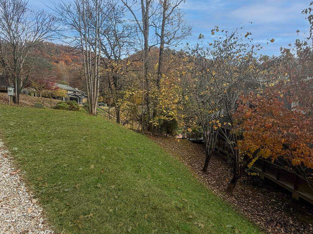 Step through the glass doors onto your covered deck, where a second gas fireplace and outdoor table create the perfect space for morning coffee, quiet evenings, or simply taking in the fresh mountain air. Surrounded by trees and gentle scenic views, it’s a peaceful outdoor extension of the suite.