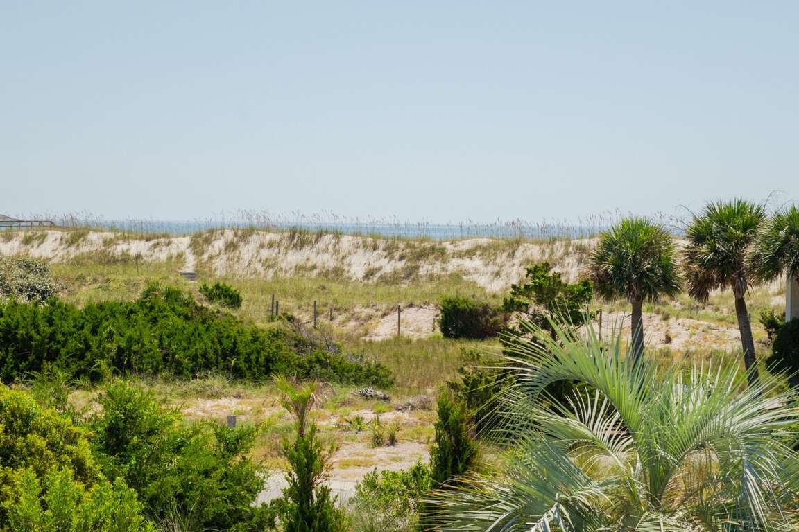 Views, VIEWS, VIEWS of the Atlantic will mesmerize you from Ocean’s 11-a second-row executive property idyllically situated on Bald Head Island. This four bedroom, 4.5 bath reverse-floor-plan home greets you with a deep beach-facing front porch that not only grants hours of salty-breeze rocking pleasure but also renders a delightful conversation space. Inside, the bottom floor opens onto a large front hall and houses three suites. The first King suite charms with its beautiful bayed front windows overlooking the front porch and housing a lovely