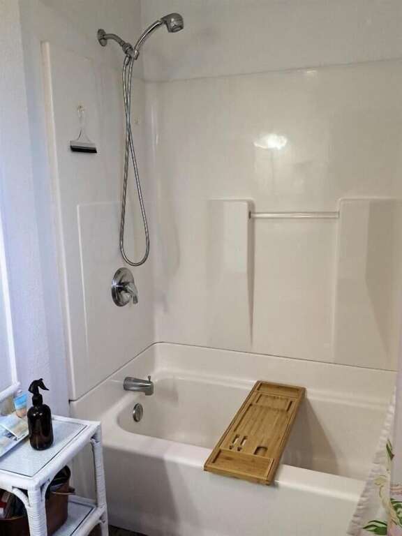 Though officially a 1-bedroom home (due to one shared closet), you'll find two separate sleeping areas: one with a queen bed, the other with a king. The full bathroom includes a shower-tub combo, and there’s a dedicated laundry room with a washer and dryer for your convenience.