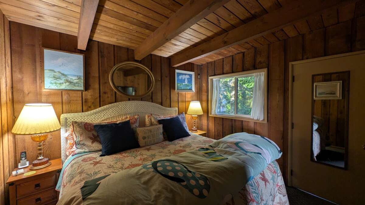 Welcome to On Beach Time, a mid-century beach cottage tucked into the trees at the top of a quiet hill in Heceta Beach. Built in 1956 and lovingly preserved, this 840 sq. ft. retreat sleeps 4 and offers a rare glimpse into the area’s coastal history — with charming vaulted ceilings, rustic cedar walls, and quirky architectural details throughout.