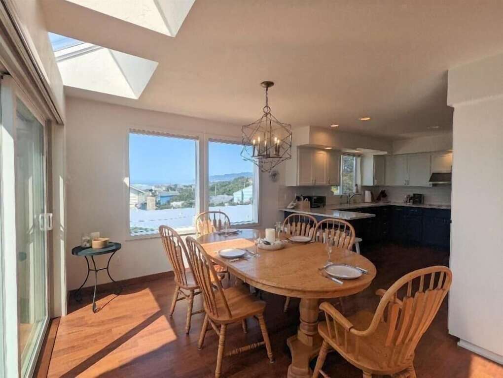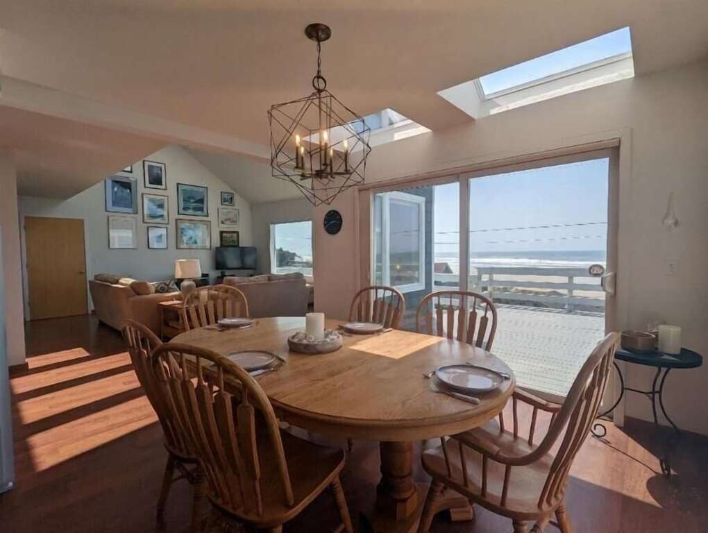Poseidon's Paradise is a 2300 square foot Northwest Contemporary home with breathtaking views and quick access to the beach, just 500 feet down the street. It offers room for the whole family to gather or spread out on 3 levels.
