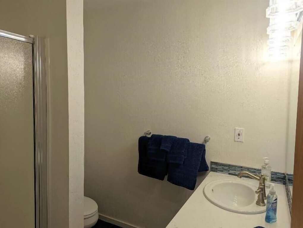 On the first level you'll find a 2 car garage, and a bunk room with two sturdy bunk beds that will hold your children or your golf buddies. It has a sofa and a TV, so you can watch the big game by yourself or the kids can hook up a game box. There is also a large laundry room with front loading washing machine and dryer, a large folding counter and a wash tub. This level also has a bathroom with shower.