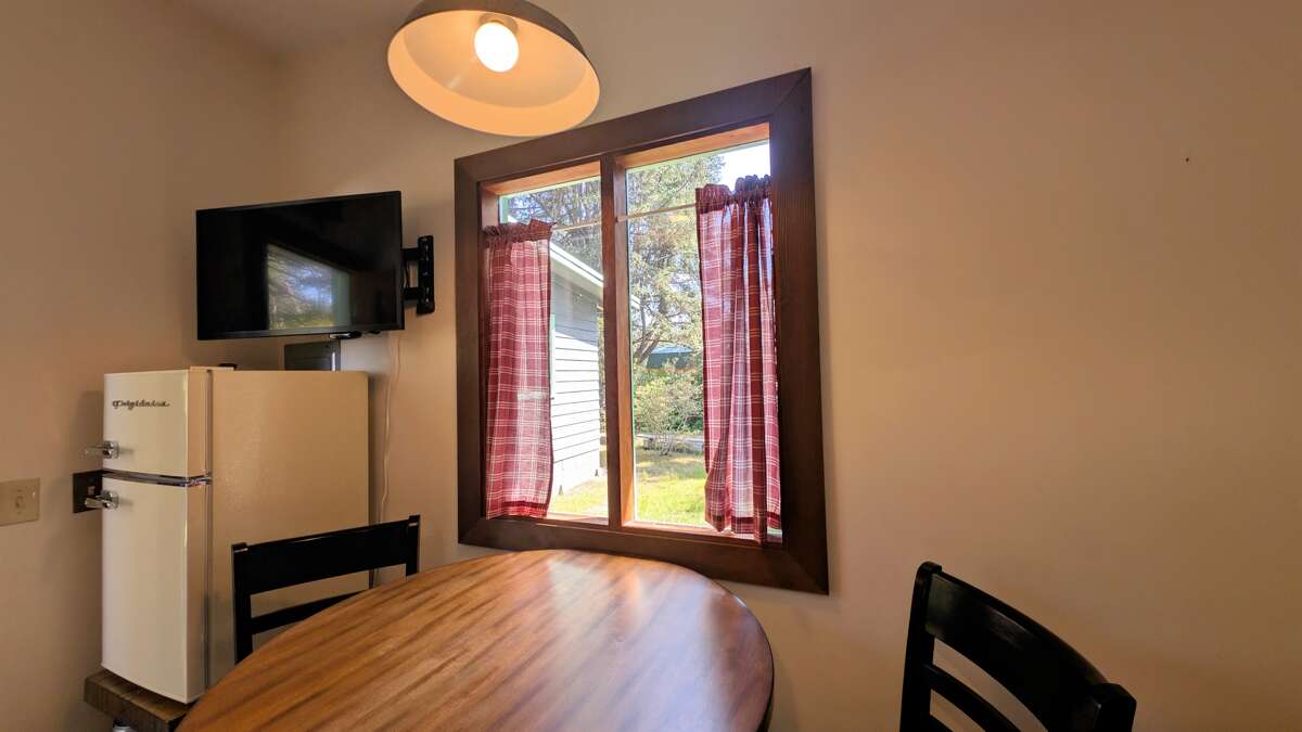 Just a few steps from the main cabin sits the bunkhouse, a charming little hideaway of its own. With a full‑size bed, a bathroom with toilet and sink, Internet TV, microwave, coffee maker, and a small refrigerator with a tiny freezer, it’s perfect for grandparents, teens, or anyone who wants a bit of extra privacy while still being part of the family gathering.