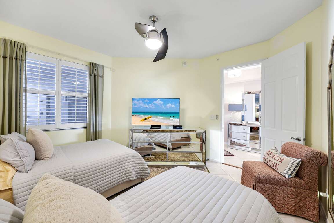 Perched elegantly at 400 Flagship Dr. Unit 902 in Naples, FL, Regatta 902 offers a luxurious 3-bedroom condo rental boasting modern furnishings and a wealth of upscale amenities. The interior design of this exquisite property exudes luxury features, with a master bedroom featuring a king bed, a second bedroom with a queen bed, and a third bedroom with a twin bed. The condo spans 2035 sq.ft., providing ample space for relaxation and entertainment. Each bedroom is equipped with its own TV, offering personalized comfort. The property's resort-style pool, fitness room, and community room further enhance the upscale living experience. Regatta 902 is a haven for those seeking a stylish and comfortable retreat in Naples, FL.