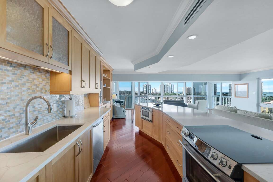 These upscale finishes complement the spacious layout, allowing for an abundance of natural light to filter through the panoramic windows. The modern decor and elegant design enhance the luxury living experience, while the bay and gulf views add an extra layer of sophistication to this exquisite condo.