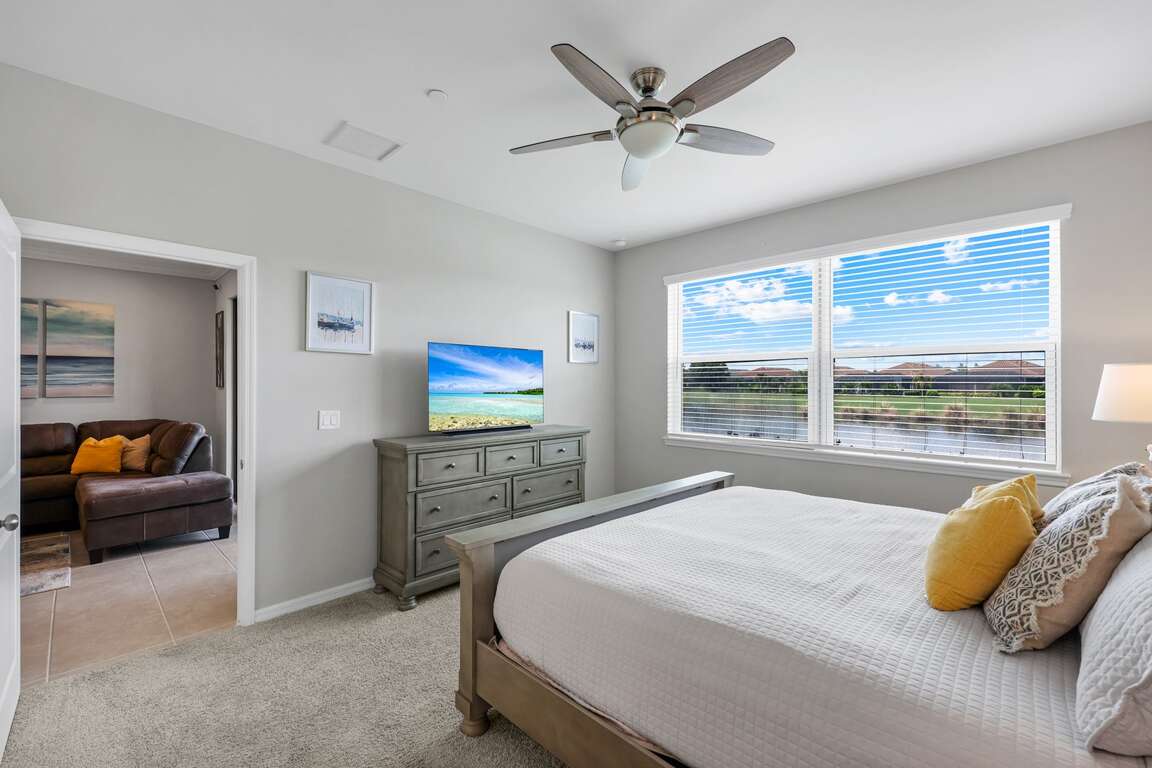 Live the resort lifestyle at Esplanade! Available for a minimum 30-day stay, this immaculate two-bedroom plus den, two-bath first-floor end-unit condominium offers the perfect Naples getaway. Lightly lived in and never previously rented, this residence features an open, airy floor plan filled with natural light, multi-sliding glass doors, and a private lanai with breathtaking lake and golf course views. For periods of relaxation, each bedroom and the living area, are equipped with smart TV's. The unique positioning provides both beauty and privacy—enjoy spectacular sunsets over the lake without direct glare into the living space. Inside, the condo is beautifully appointed with tile flooring throughout, ceiling fans in every major room, white shaker-style cabinetry, GE stainless steel appliances, and a detached one-car garage. Your rental includes a club/sports membership, granting access to Esplanade’s resort-style amenities: a spectacular pool with cabanas and the Bahama Bar, tennis, pickleball and bocce courts, Koquina Day Spa, state-of-the-art fitness center, dog park, 14 miles of scenic trails, and limited golf privileges with advanced tee times. Dining options abound with an on-site restaurant, bar, wine tasting room, wine lockers, and a café. Whether for a month or the season, this pristine condo is the perfect place to enjoy Naples living at its finest.