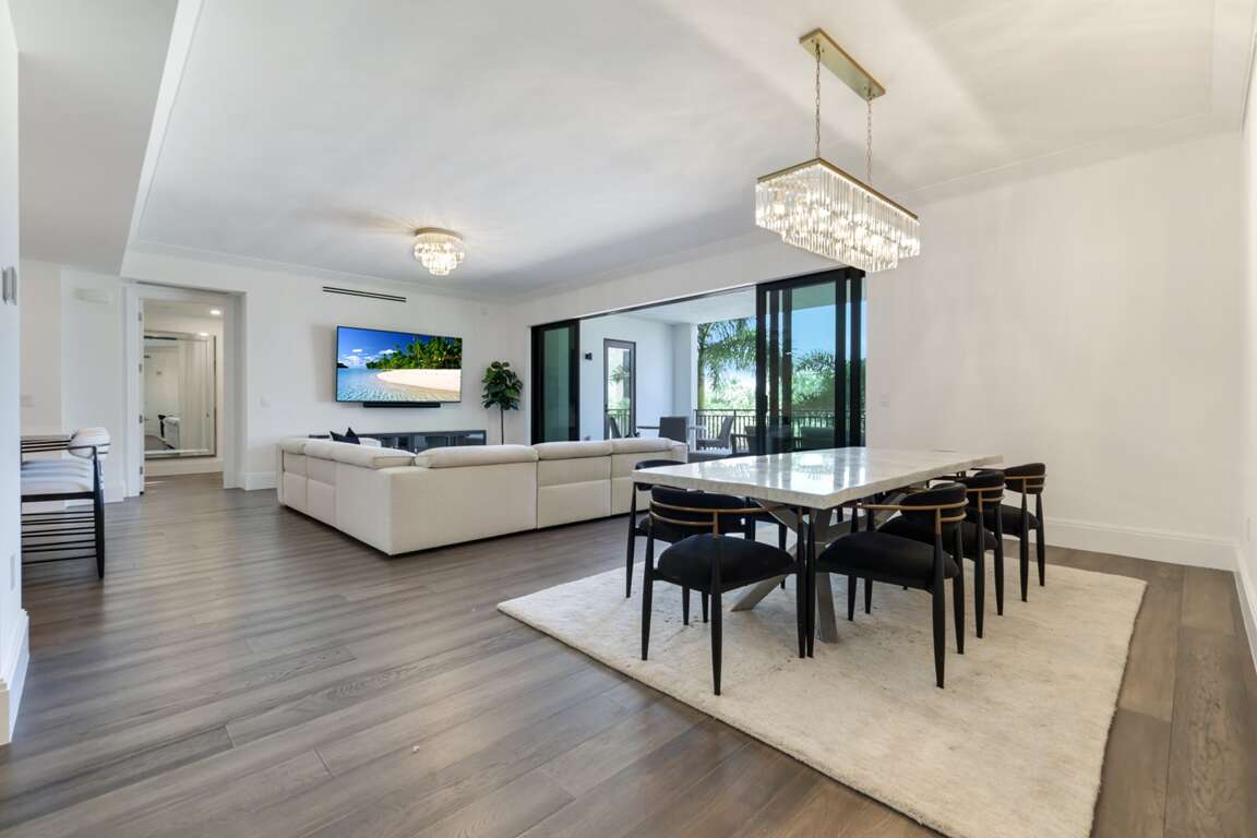 Experience the ultimate in modern coastal luxury at Quattro at Naples Square, where contemporary design meets the relaxed elegance of downtown Naples living. Built in 2023 and newly furnished with high-end designer pieces throughout, this immaculate residence offers the perfect blend of comfort, sophistication, and resort-style indulgence. Situated just steps from 5th Avenue South, Bayfront, Tin City, and the new Gulfshore Playhouse, you’ll be in the heart of Naples’ vibrant dining, shopping, and entertainment district — with the beach and sunset views just minutes away. This spacious 3-bedroom plus den, 3.5-bath residence welcomes you with an open-concept great room framed by oversized sliding glass doors that lead to a large covered lanai — ideal for enjoying morning coffee or evening cocktails. The gourmet kitchen is a showpiece, featuring a sleek center island, quartz countertops, designer backsplash, custom cabinetry, and chic lighting that sets the tone for elegant gatherings. Each room is outfitted with brand-new, premium furnishings and large-screen smart TVs, ensuring a luxurious, hotel-like experience for every guest. The primary suite is a serene private escape with a spa-style ensuite featuring dual sinks, a freestanding soaking tub, and a frameless glass shower with multiple showerheads. Each guest suite offers its own beautifully appointed bathroom for privacy and comfort. Throughout the home, you’ll find wide-plank wood flooring, tray ceilings, tall baseboards, and curated finishes that reflect timeless Naples elegance. Added conveniences like a fully equipped laundry room with sink and wine chiller make extended stays effortless. Guests enjoy exclusive access to resort-style amenities, including a heated pool and spa, outdoor fire pit and lounge areas, grilling stations, a club room with billiards and kitchen, and a state-of-the-art fitness center. The community is pet-friendly, and your stay includes two secure garage parking spaces. Whether you’re planning a luxury getaway, a seasonal escape, or a longer stay in paradise, this Quattro residence offers the perfect Naples lifestyle — modern, walkable, and utterly unforgettable. Live the Naples dream in style. Your luxury vacation starts here.