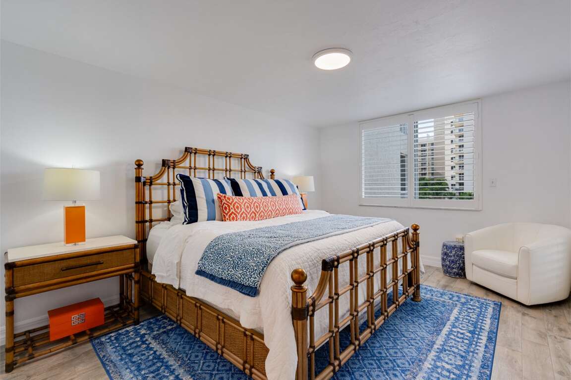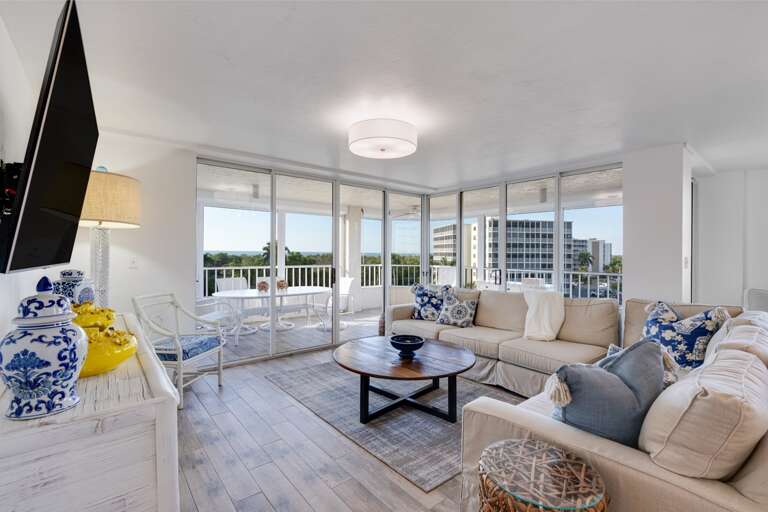 Welcome to your perfect coastal getaway! This beautifully appointed 2-bedroom, 2-bath condo offers nearly 1,500 sq ft of interior living space plus two spacious lanais, giving you plenty of room to relax and enjoy the Florida lifestyle. Located on the quiet north end of Vanderbilt Beach, this 4th-floor, end-unit residence is just steps to the beach with private gated access directly across the street. Spend your days enjoying the sugar-sand shoreline, water sports, shelling, and boating—and your evenings soaking in breathtaking sunset views from the expansive screened wraparound lanai. Start your mornings with coffee on the rear screened balcony while watching dolphins glide through the bay, with direct access from both the kitchen and guest bedroom. The split floor plan provides privacy for guests, featuring their own bedroom, bath, and lanai, while the primary suite offers a peaceful retreat. The condo is comfortably furnished with a relaxed coastal design by Kelly Smith Interiors of Naples. A full renovation refreshed the kitchen, bathrooms, flooring, lighting, and furnishings, creating a bright, comfortable space ideal for vacation living. Both bedrooms feature custom built-in closets and cozy bedding to ensure a restful stay. After a day at the beach or out on the water, you’re just minutes from Mercato, offering fine dining, upscale shopping, live music, and vibrant nightlife. Golf, fishing charters, paddleboarding, kayaking, and sunset cruises are all close by. This condo is an exceptional choice for a seasonal escape or extended beach vacation. Whether you’re here to relax, explore, or entertain, this Vanderbilt Beach retreat delivers the ultimate Southwest Florida experience.