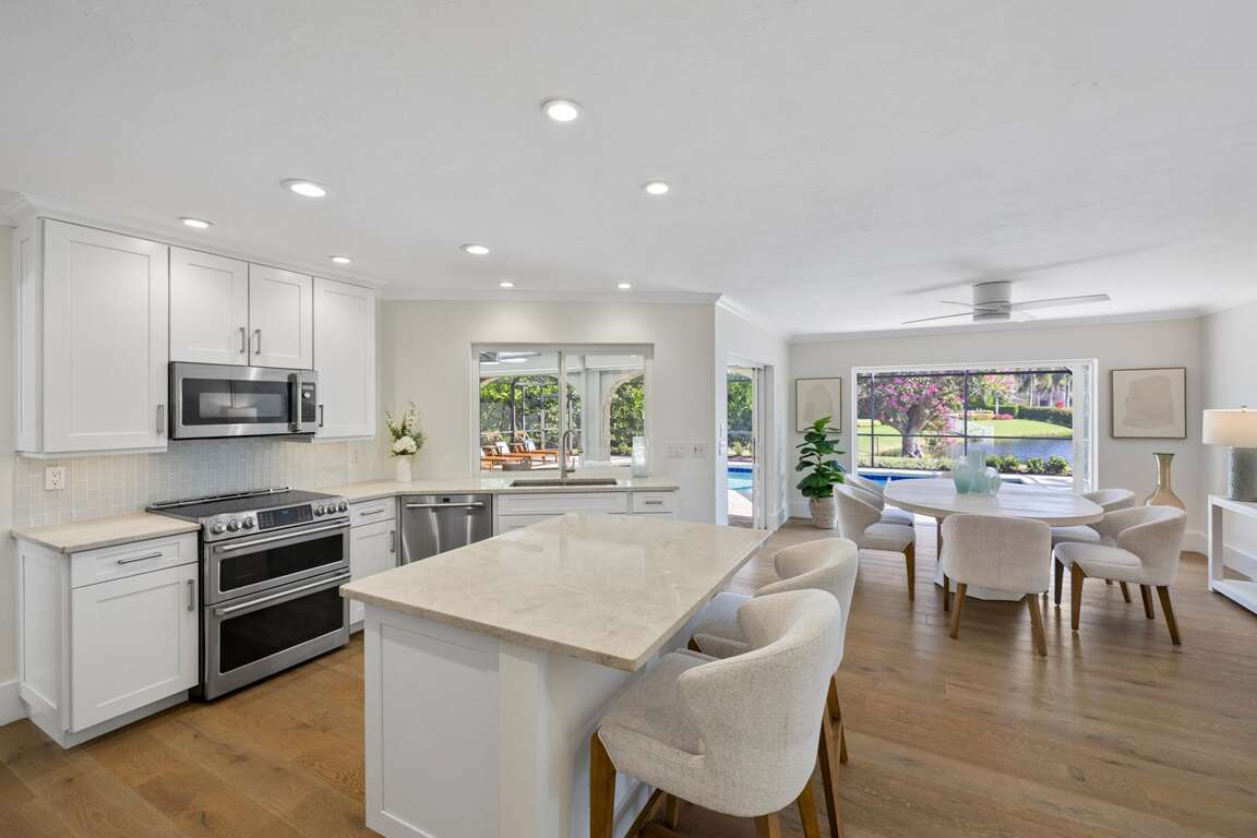 Coastal Charm Meets Park Shore Luxury! Discover the ultimate Naples lifestyle in this lakefront gem located in the prestigious Park Shore community—just a short walk to the beach, Venetian Village, and Waterside Shops offering world-class shopping and dining.This beautifully maintained home features a remodeled kitchen and guest bath, new appliances, spacious living and family rooms, hardwood flooring, and impact-resistant windows and sliding doors throughout. The expansive covered lanai with a summer kitchen and screened pool area provides the perfect setting for entertaining, relaxing by the water, swim in the heated pool or enjoying the stunning sunrise and sunset views over the lake. Park Shore Private Beach access, boat, kayak and paddle board rental by Venetian Village will make your stay unforgettable. Your piece of Naples paradise awaits!