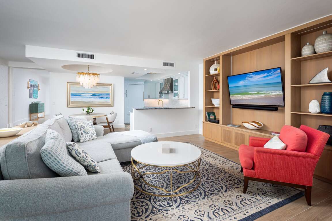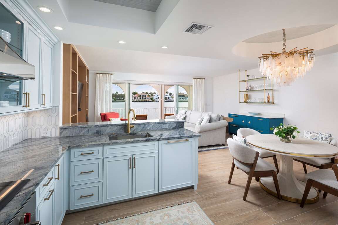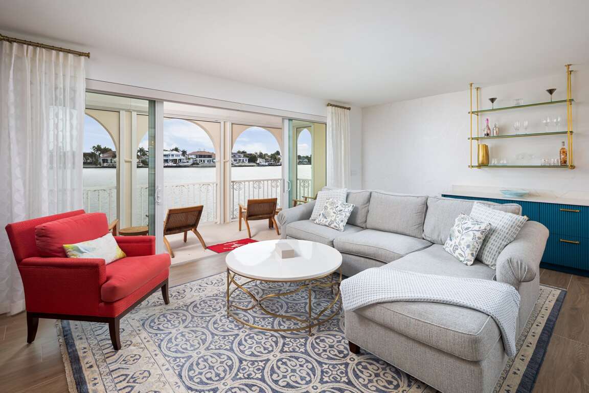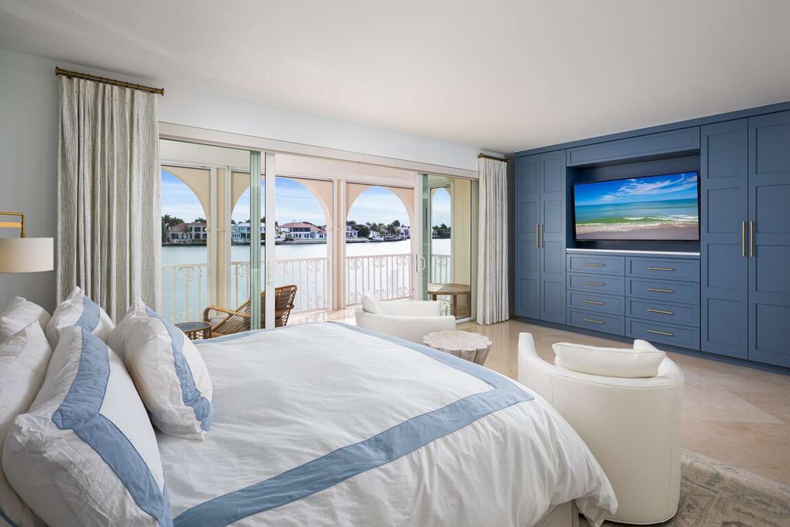 Welcome to your ultimate coastal retreat at Venetian Villas, one of Naples’ most exclusive gated communities, perfectly situated on its own private island in the heart of Park Shore. This sophisticated first-floor residence offers 2 spacious bedrooms and 3 full bathrooms, blending ultimate privacy with sweeping views of Venetian Bay. Step inside to a bright, open floor plan where elegance meets comfort. The expansive great room features new wide-plank wood-look tile, custom built-ins, and a sleek dry bar with a beverage fridge—ideal for effortless entertaining. Floor-to-ceiling impact glass sliders open to an oversized bayfront balcony, the perfect spot for morning coffee or sunset cocktails while soaking in unobstructed water views. The chef’s kitchen is a dream, equipped with double ovens, a generous walk-in pantry, and top-tier essentials that make cooking a pleasure. The primary suite is a serene retreat with private balcony access, tailored built-ins, elegant wall finishes, and a newly renovated spa-inspired bath featuring dual vanities, a deep soaking tub, and a glass-enclosed shower. Each bedroom has been thoughtfully curated with sumptuous linens and refined décor, providing a luxurious, resort-style experience for owners and guests alike. Beyond the home, Venetian Villas offers deeded beach access just steps away, where you can enjoy some of Naples’ most beautiful white-sand beaches with calm waters and breathtaking sunsets. The community also provides a sparkling bayfront pool, private garages, and optional boat slip leasing—making it easy to embrace the effortless island-style lifestyle. When you’re ready to explore, premier shopping, fine dining, and the charming boutiques of Venetian Village are just minutes from your door. Whether you’re here for a seasonal stay or a quick getaway, this property perfectly captures the essence of Naples living: a serene, scenic escape that’s both tucked away and close to all the action, creating a coastal experience guests will never forget.