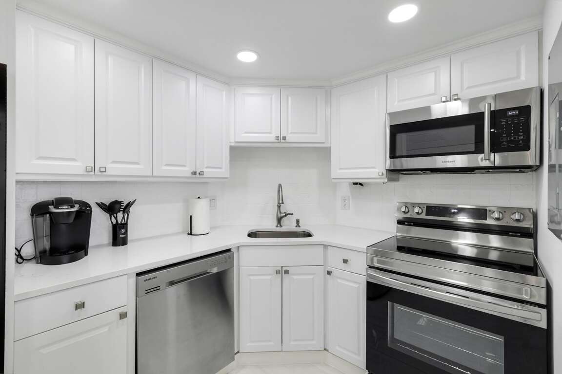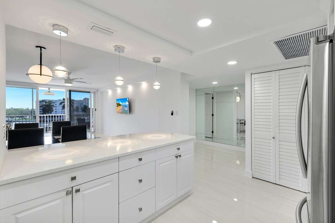 This beautifully updated and tastefully furnished one-bedroom, one-bath condo is ideally located in Vanderbilt Towers in the highly sought-after North Naples area. Situated on the 4th floor, this light and bright residence is just a short walk to Vanderbilt Beach and offers direct access to Delnor-Wiggins State Park. Additional highlights include newly installed ductwork throughout the unit. For convenience, there is a laundry room on every floor of the building. The location allows the convenience of being just minutes from some of Naples' premier dining destinations, including Baleen at LaPlaya, The Turtle Club and the Ritz Carlton. This property has a light and bright open concept floor plan with white tile flooring throughout. The updated kitchen features white quartz countertops, Samsung stainless steel appliances, white cabinetry, pantry and modern lighting.