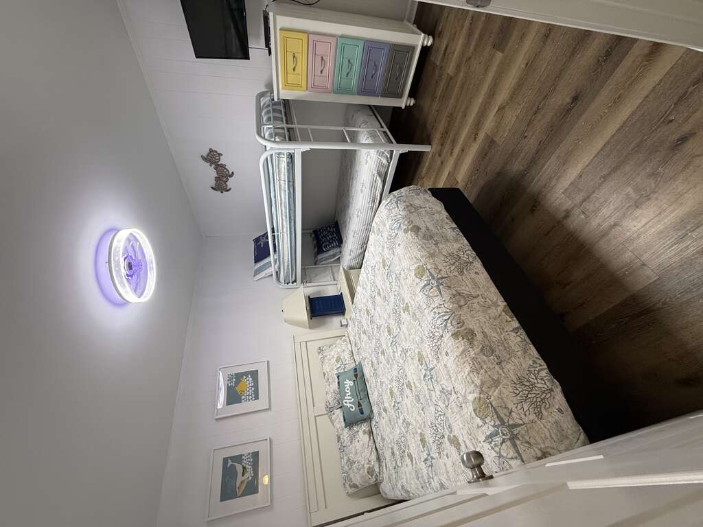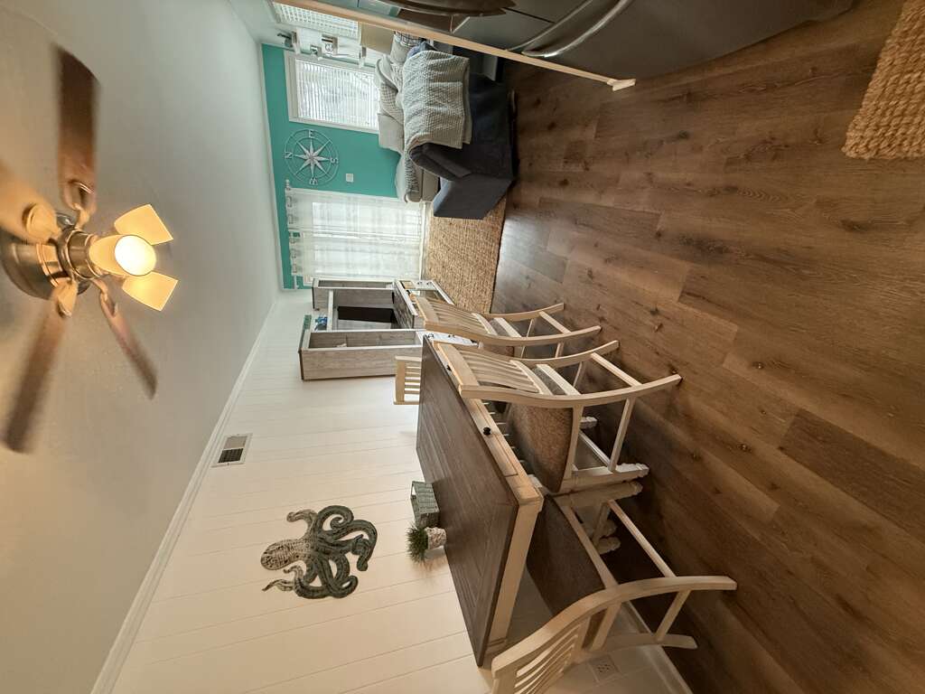 A PLACE AT THE BEACH PHASE I - 277 West First Street Unit 1L- SUNNYSIDE UP - This first floor side unit condo is in an oceanfront complex, so you won't have to cross the street to get to the beach. It features two bedrooms and one and a half baths on one level. One bedroom has a king bed, and 1/2 bath, and the other bedroom has one queen and one set of bunk beds (2 twins). The dining table seats four.