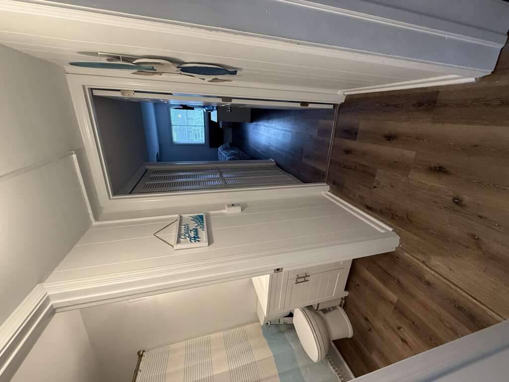 Amenities include seasonal community pool, outside shower, central heat and air, dishwasher, microwave oven, high efficiency washer and dryer in the unit, blender, large seafood pot, air fryer, waffle maker, Keurig coffee maker and regular coffee maker, and Wireless Internet. There are hibachi grills in the common area near the pool. This unit has a private balcony which faces off to the side of the building, but there's some ocean view from the side. (Please see photo labeled "View from deck")