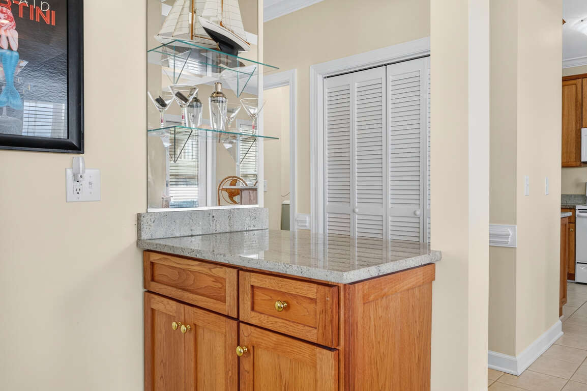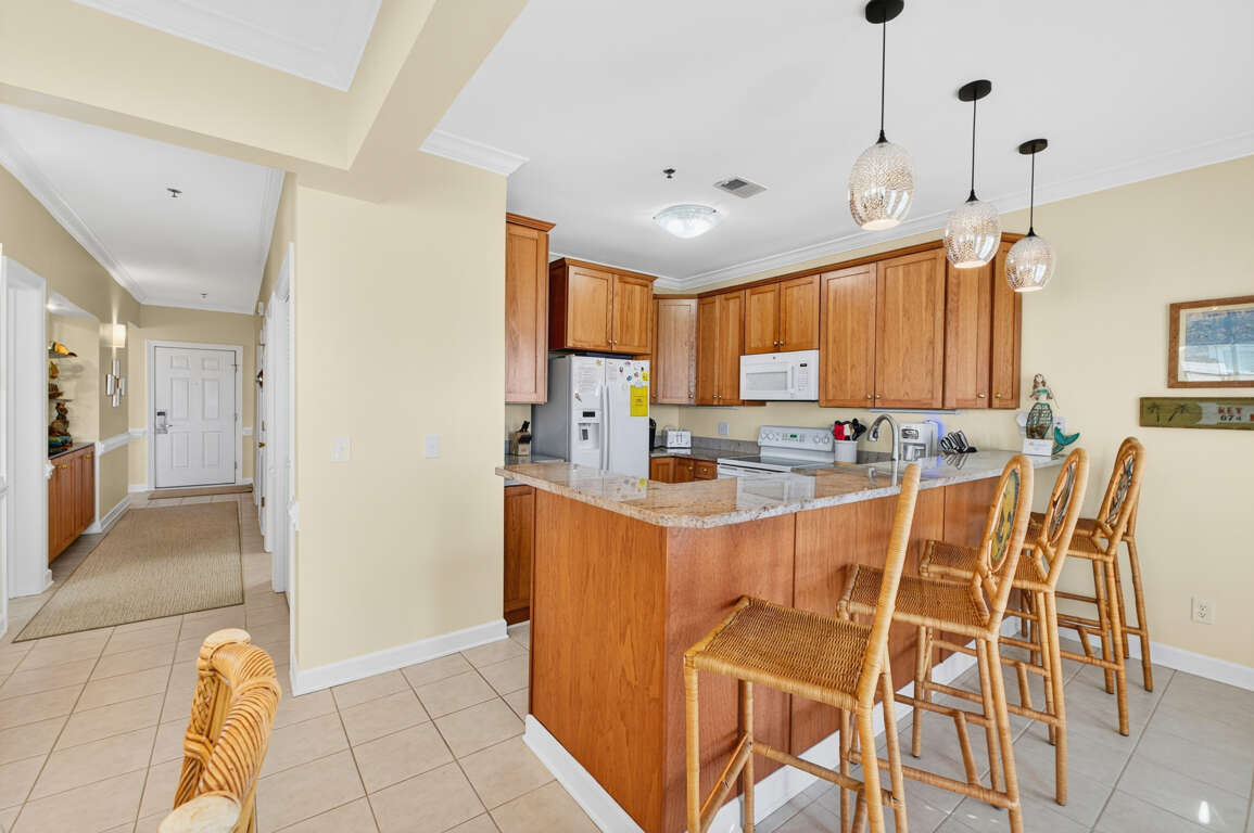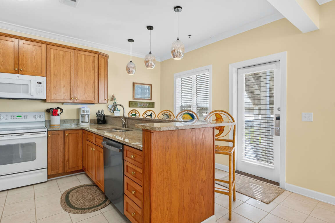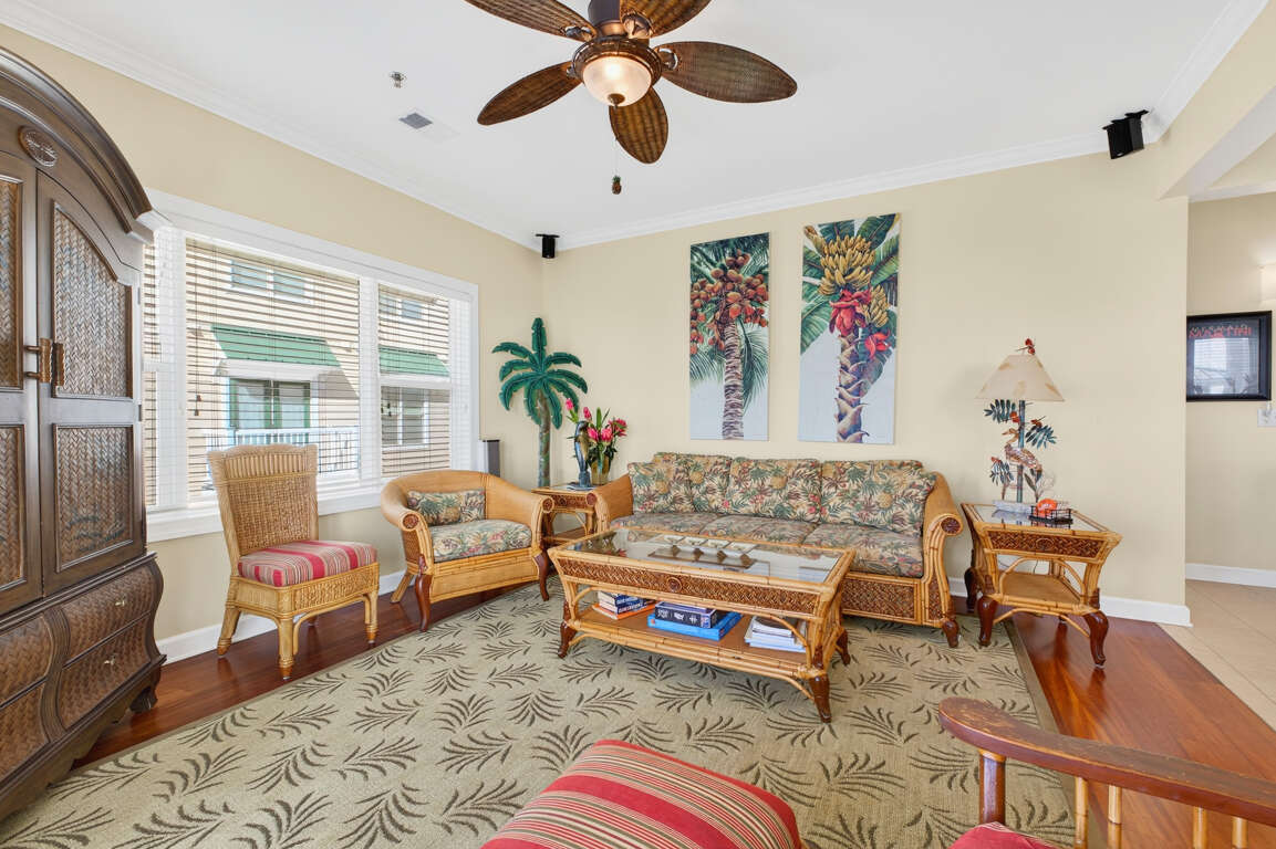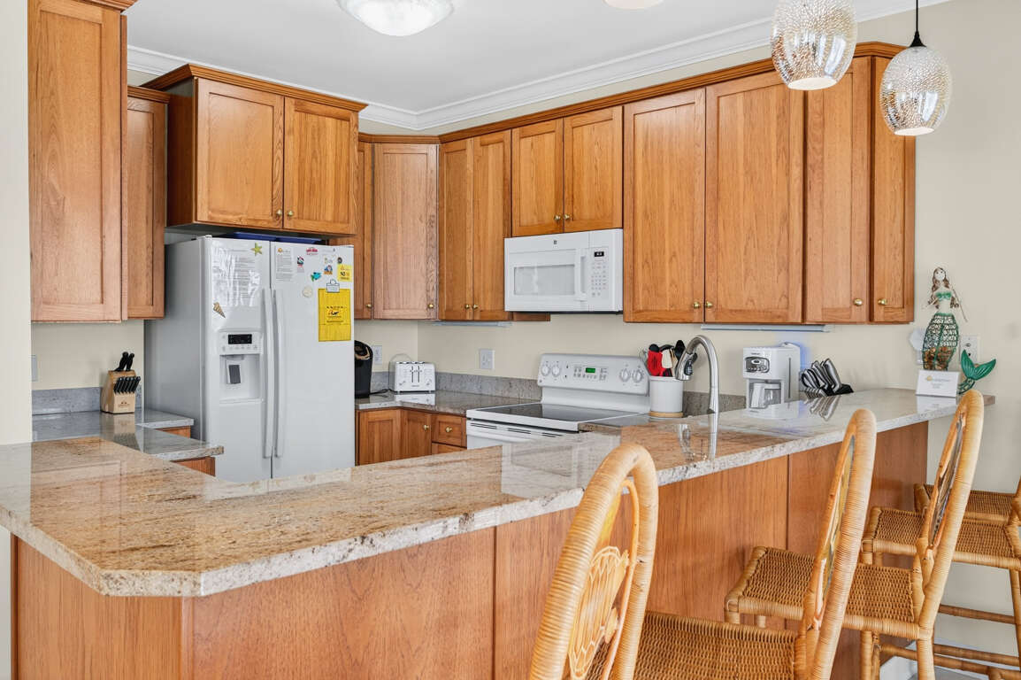 ISLANDER VILLAS - 5 Jan Street Unit C - This spacious second floor, second row condo features four bedrooms and four baths on one level. Two of the bedrooms have a king bed in each, and TVs; the other two bedrooms have two double beds in each, and these rooms have TVs. The dining table seats six (plus two other chairs available) and there are five stools at the kitchen bar for additional seating. Amenities include access to an oceanfront community pool at the Islander Resort, approximately two blocks from the condo, as well as use of the Islander Villas tennis courts nearby; elevator, outside shower, central heat and air, washer and dryer, dishwasher, microwave oven, blender, Keurig coffeemaker, regular coffeemaker, 50 inch Smart TV, with Netflix, ceiling fans, wet bar, whirlpool tub in master bath, Brookstone Big Media bluetooth speaker and secured Wi-Fi. This property does not provide cable service, but there are five Smart TVs (living room and all bedrooms), which provide Streaming with guest's own account. This condo is approximately 150' from the Dawson Street beach access and 40 steps to Villas 5 access. The large, ocean facing deck offers partial ocean views. This condo has an owner provided keyless entry lock. You will be notified of the code on arrival day, as soon as the property is ready.Designated Golf Cart charging outlets are located on the pilings between the parking spaces. Golf Carts must be charged using a single cable made for the golf cart and not a drop cord per OIB Fire Department.BOATS, RVs or TRAILERS ARE NOT ALLOWED. NO ELECTRICAL VEHICLE CHARGING IS PERMITTED AT ANY TIME.*Sheets, bedspreads, and pillows are provided for each bed to ensure guest comfort and convenience during your stay. Bath towels are supplied for the maximum occupancy of the unit, and all linens are cleaned and maintained to high standards prior to each new occupancy. Linens will be delivered in a labeled bag and placed outside of the door prior to arrival. At the end of your stay, PLEASE PLACE ALL USED LINENS BACK IN THE BAG AND LEAVE IT OUTSIDE THE FRONT DOOR FOR PICK UP. Paper and soap products are not provided. The linen package is included with every reservation and is not optional.* ALL UNITS ARE NON-SMOKING, AND NO PETS ARE ALLOWED. THERE'S TO BE NO EARLY CHECK-INS TO THIS PROPERTY.