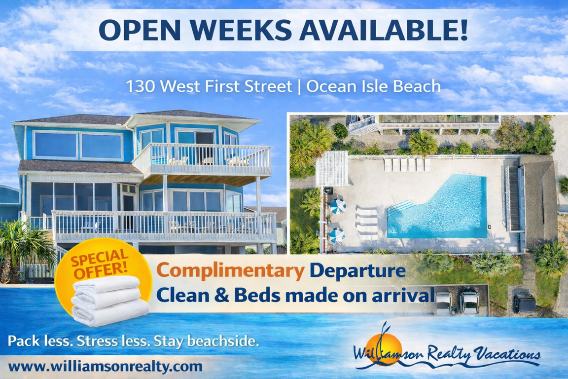 Availability details can be found on the Williamson Realty Vacations website.