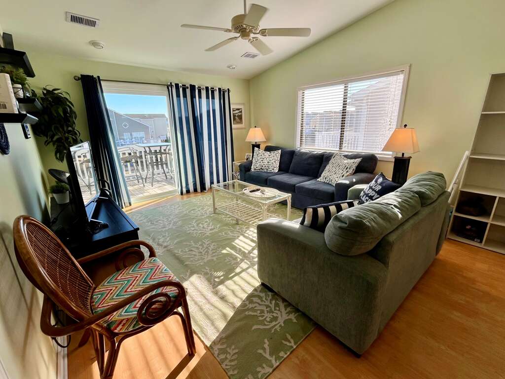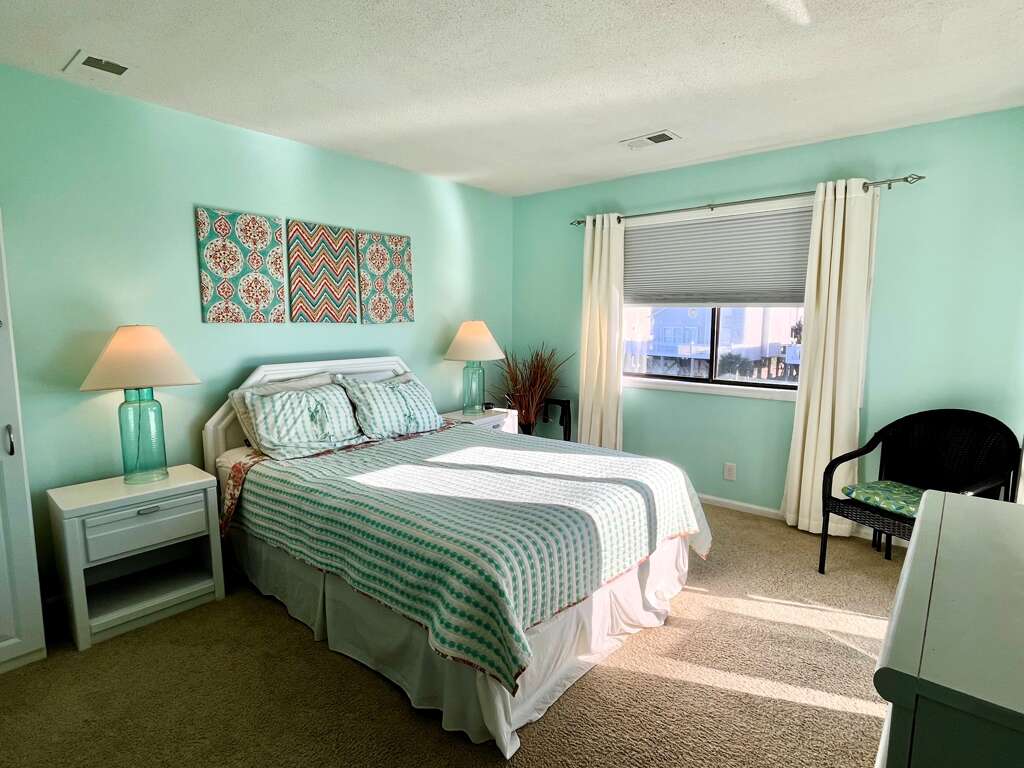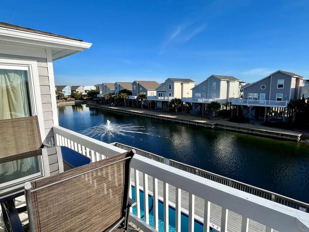 Amenities include two private balconies, one overlooking the lagoon, and one on the street side, seasonal community pool, cold water outside shower, central heat and air, washer and dryer, dishwasher, microwave oven, iron/ironing board and secure Wi-Fi. There's a highchair and a pack n play for the little guests. This condo is approximately a 5-minute walk from the beach. This condo does not provide cable service. Smart TVs in living room and master bedroom have Streaming services which may be accessed with guests own streaming accounts. The TVs are also equipped with antenna for some local channels.