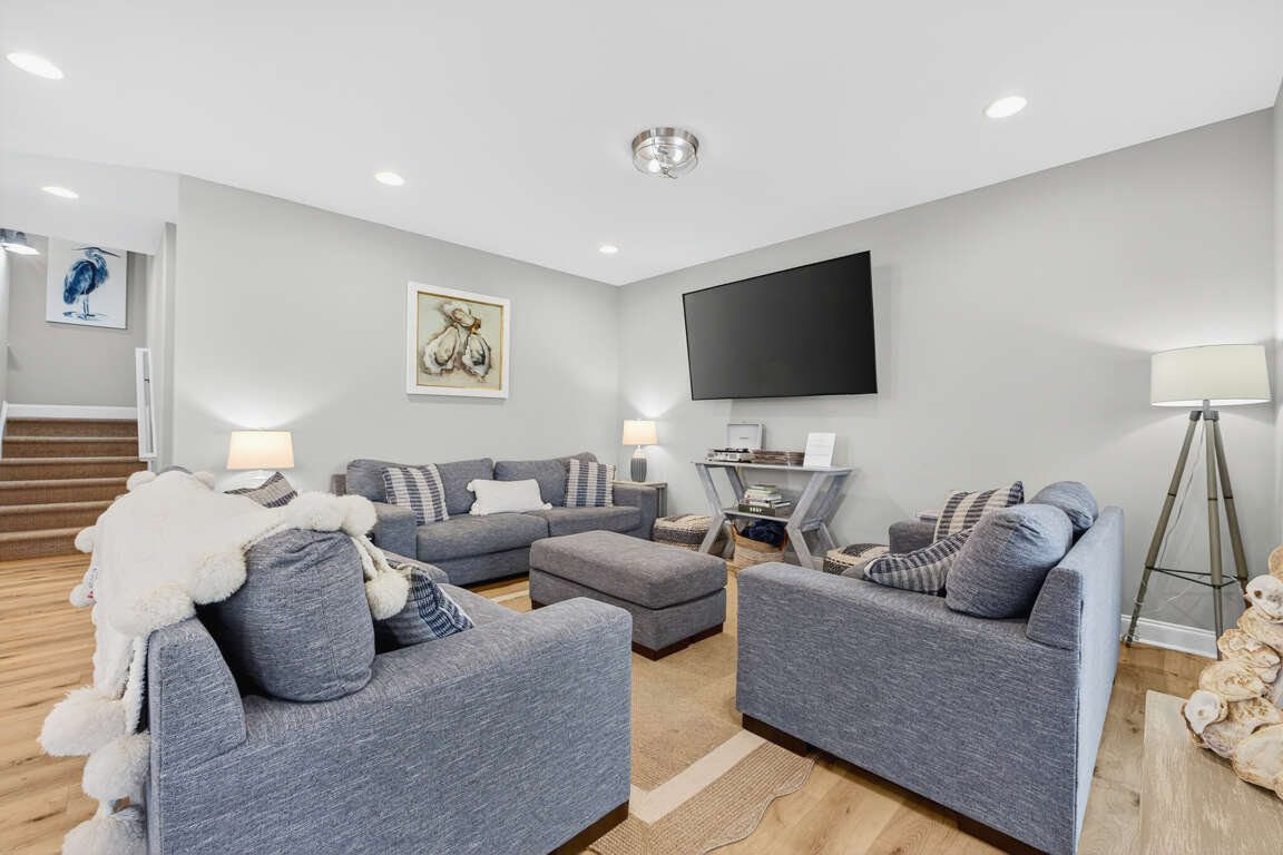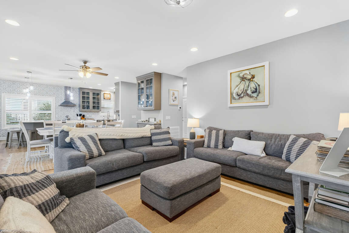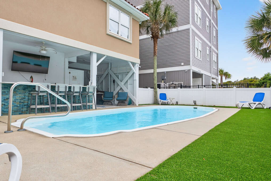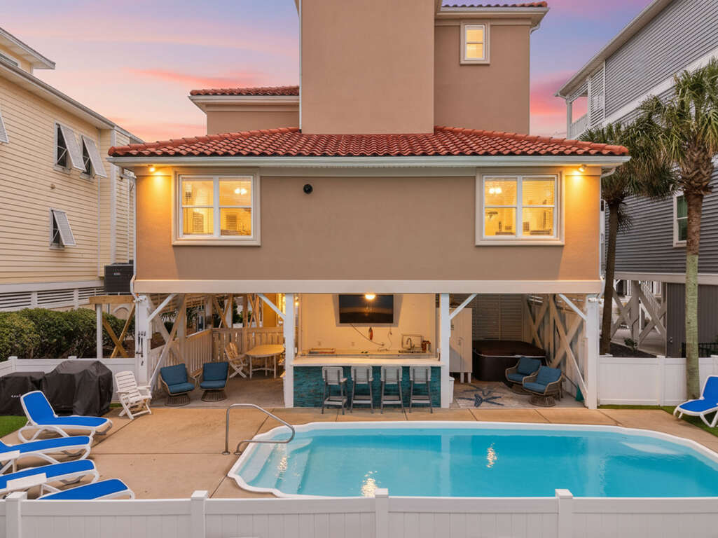 Welcome to 282 West First Street, a beautifully renovated ocean-view retreat. This spacious three-level home offers seven bedrooms and 6.5 bathrooms, making it an ideal getaway for large or multi-family groups. With over 3,000 square feet of thoughtfully designed living space, the home features five bedrooms on the first floorthree with king beds and private ensuite baths with showers, one bedroom with two queens and one bedroom with two sets of pyramid bunks single over double, which feature a Jack-and-Jill setup with shower/tub for added flexibility. The main level is the heart of the home, with an open-concept kitchen, dining, and living area, along with a half bath and laundry room. Upstairs, two expansive primary suites with kings beds offer private baths with showers and direct access to an outdoor living space. One of the standout features of this home is the expansive porches on all three levels, each offering sweeping views perfect for enjoying sunrises, sea breezes, and evening cocktails. An elevator serves the first and second floors, making the home easily accessible for all guests. The home is equipped with a beautiful updated kitchen with modern appliances along with conveniences such as a free-standing ice maker, Keurig coffee maker, blender and big seafood pot. Additional amenities include keyless entry, washer and dryer, central heating and air, and high-speed Wi-Fi. YouTube TV is provided, and each of the seven bedroomsplus the pool areafeatures its own Smart TV for streaming your favorite shows. For families with children, a porta crib is also available.Outside, you'll enjoy a private pool with a tiki bar, hot tub, ample seating, and a Smart TV in the pool area for outdoor entertainment. After a day at the beach, rinse off in the enclosed outdoor shower with hot and cold water, then relax in the shaded comfort of the porches.*Sheets, bedspreads, and pillows are provided for each bed, and ALL BEDS ARE MADE for your comfort and convenience. Bath towels are supplied for the maximum occupancy of the unit, and all linens are cleaned and maintained to high standards before each new stay. At the end of your stay, PLEASE PLACE ALL USED LINENS BACK IN THE LINEN BAG AND LEAVE IT OUTSIDE OF YOUR DOOR FOR PICK UP. The linen package is included with every reservation and is not optional. Please note that paper and soap products are not provided and should be brought by guests. Top bunk beds will not be made. *ALL OUR RENTALS ARE NON-SMOKING AND NO PETS ARE ALLOWED.