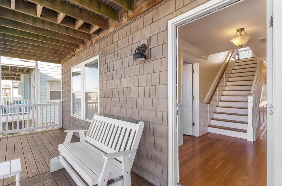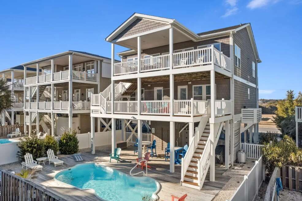 KEY TO PARADISE - 390 East Second Street - This third row house with keyless entry features five bedrooms and five and a half baths on two levels. On the first floor, there are four bedrooms. The first bedroom has a king bed, Two of the bedrooms have a queen bed in each. The fourth bedroom on the first level has a queen bed and a queen bunk bed.. Upstairs, the master bedroom has a king bed. The dining room table seats twelve. There are three stools at the kitchen bar and a breakfast nook that seats four. Amenities include a 10' X 22' private pool, gas grill, enclosed hot and cold water outside shower, central heat and air, washer and dryer, dishwasher, microwave oven, coffee maker, Keurig, blender, and secured Wi-Fi. With two levels of decks, and new polywood outside furniture, you can sit and relax in the shade or catch some sun rays. *Sheets, bedspreads, and pillows are provided for each bed to ensure guest comfort and convenience during your stay. Bath towels are supplied for the maximum occupancy of the unit, and all linens are cleaned and maintained to high standards prior to each new occupancy. Linens will be delivered in a labeled bag and placed outside of the door prior to arrival. At the end of your stay, PLEASE PLACE ALL USED LINENS BACK IN THE BAG AND LEAVE IT OUTSIDE THE FRONT DOOR FOR PICK UP. Paper and soap products are not provided. The linen package is included with every reservation and is not optional.* ALL OUR UNITS ARE NON-SMOKING, AND NO PETS ARE ALLOWED.