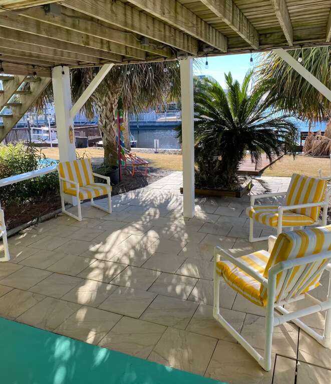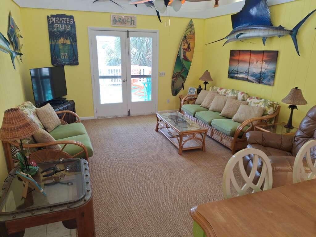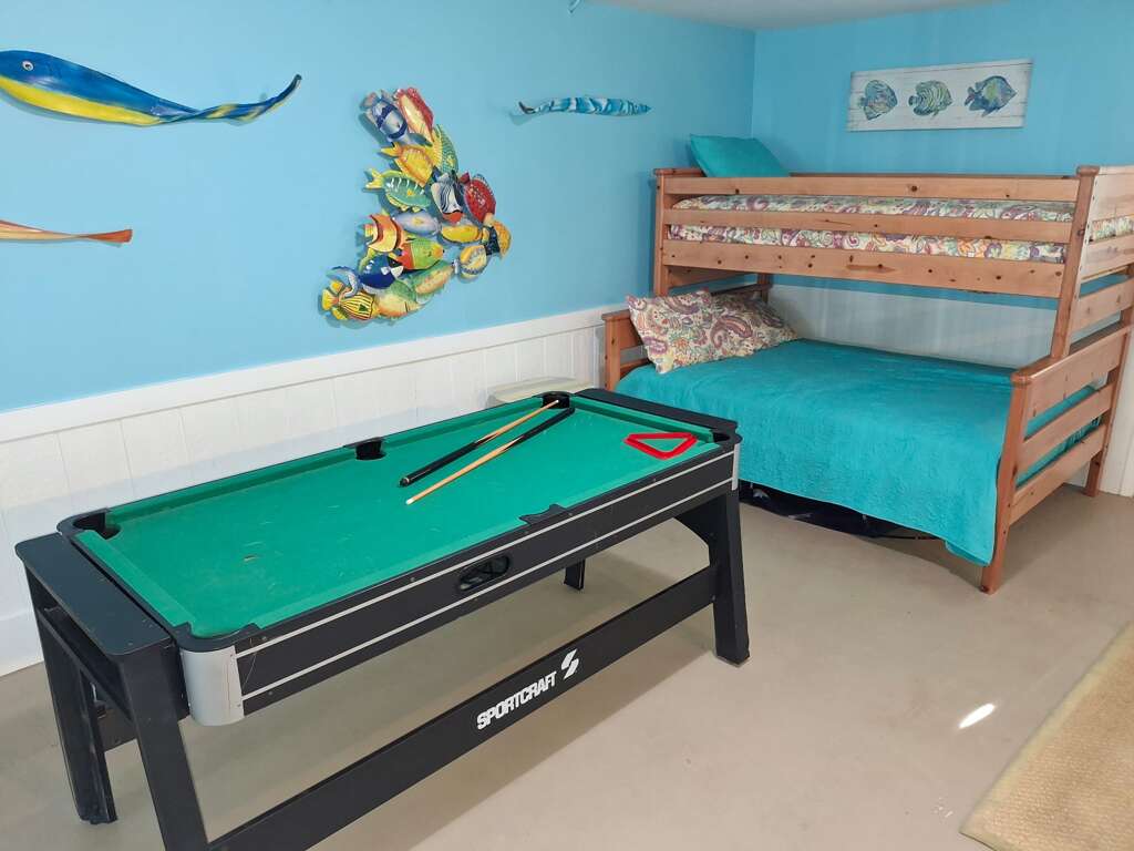22 Craven Street Looking for a waterfront home? You will feel you have stepped into your private Island Resort! During your stay, dock for your boat, float in the canal with your drinks in hand or watch the boats pass by. This home offers 4 bedrooms and 2 baths upstairs and a 1/2 bath and outdoor shower ground level. Upstairs, three bedrooms have a queen bed. The fourth bedroom has a queen bed, twin bunks and a crib. The ground level room is an entertainment/living area. It features a small pool table, TV, a bunk bed with twin top and double bottom, and commercial ice maker that you are welcome to use.Boat and jet ski trailers can be parked at the house after launching your boat at the public boat landing on the Island. You may want to rent a golf cart to drive to the access as it is about a half mile to the ocean front. NO grill is provided so be prepared to bring or rent one. KEYLESS ENTRYThis property does not provide cable service, but there are Smart TVs for streaming using guest's own account.Amenities include boat dock, hot and cold water outside shower, central heat and air, dishwasher, washer and dryer, microwave oven, blender, and secured Wi-Fi. The dining room table seats six and there are also four stools at the bar for additional seating. You can sit and relax in the shade of the ground level patio, or catch some rays on the large, open canal side deck.The garage area is not available to renters.*Sheets, bedspreads, and pillows are provided for each bed to ensure guest comfort and convenience during your stay. Bath towels are supplied for the maximum occupancy of the unit, and all linens freshly laundered prior to each new occupancy. Linens will be delivered in a labeled bag and placed outside of the door prior to arrival. At the end of your stay, PLEASE PLACE ALL USED LINENS BACK IN THE BAG AND LEAVE IT OUTSIDE THE FRONT DOOR FOR PICK UP. Paper and soap products are not provided. The linen package is included with every reservation and is not optional.* ALL UNITS ARE NON-SMOKING, AND NO PETS ARE ALLOWED.