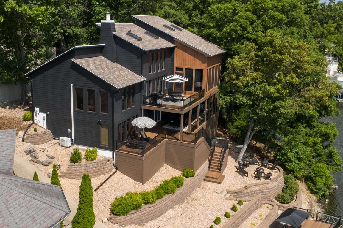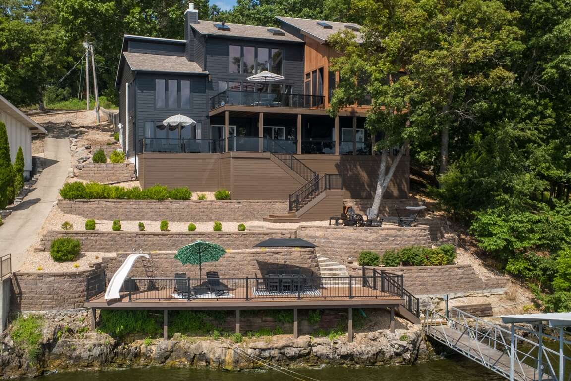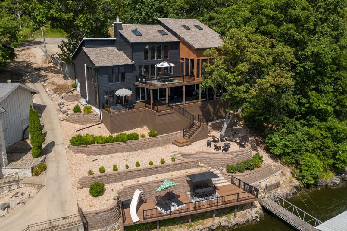Perched atop the serene hills of Sunrise Beach, Missouri, The Viewhouse offers a luxurious retreat with breathtaking vistas of the main channel, making it an idyllic destination for a relaxing getaway. The interior design of this 5-bedroom vacation home boasts multiple master suites, each elegantly furnished for comfort and style. The fully equipped kitchen features modern appliances, including an in-wall oven, gas range, and a wine cooler, catering to culinary enthusiasts. Outdoor features include multiple decks for soaking in the panoramic views, a dock for water activities, a martini deck for unwinding, a fire pit for cozy evenings, and a hammock for lazy afternoons. Additionally, guests can enjoy various entertainment options both indoors and outdoors, ensuring a memorable stay at The Viewhouse.