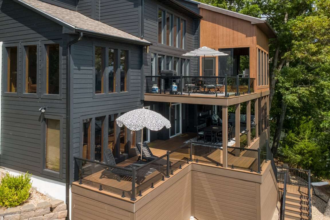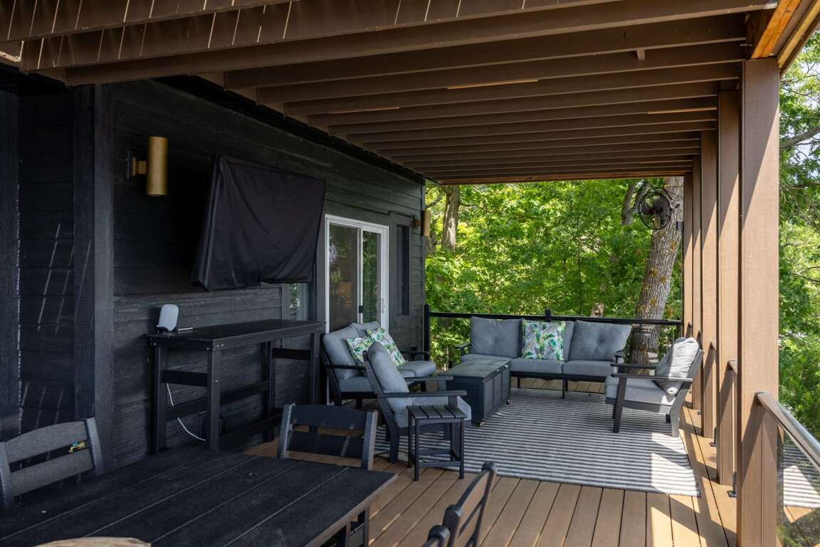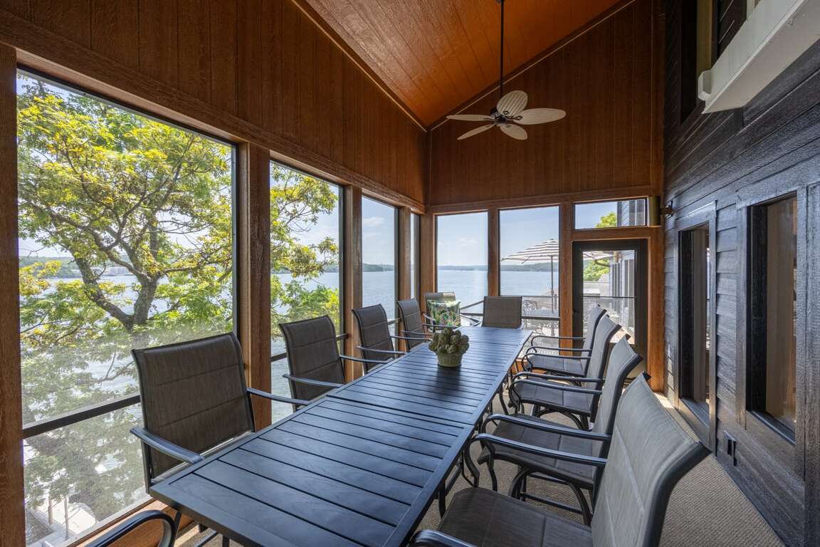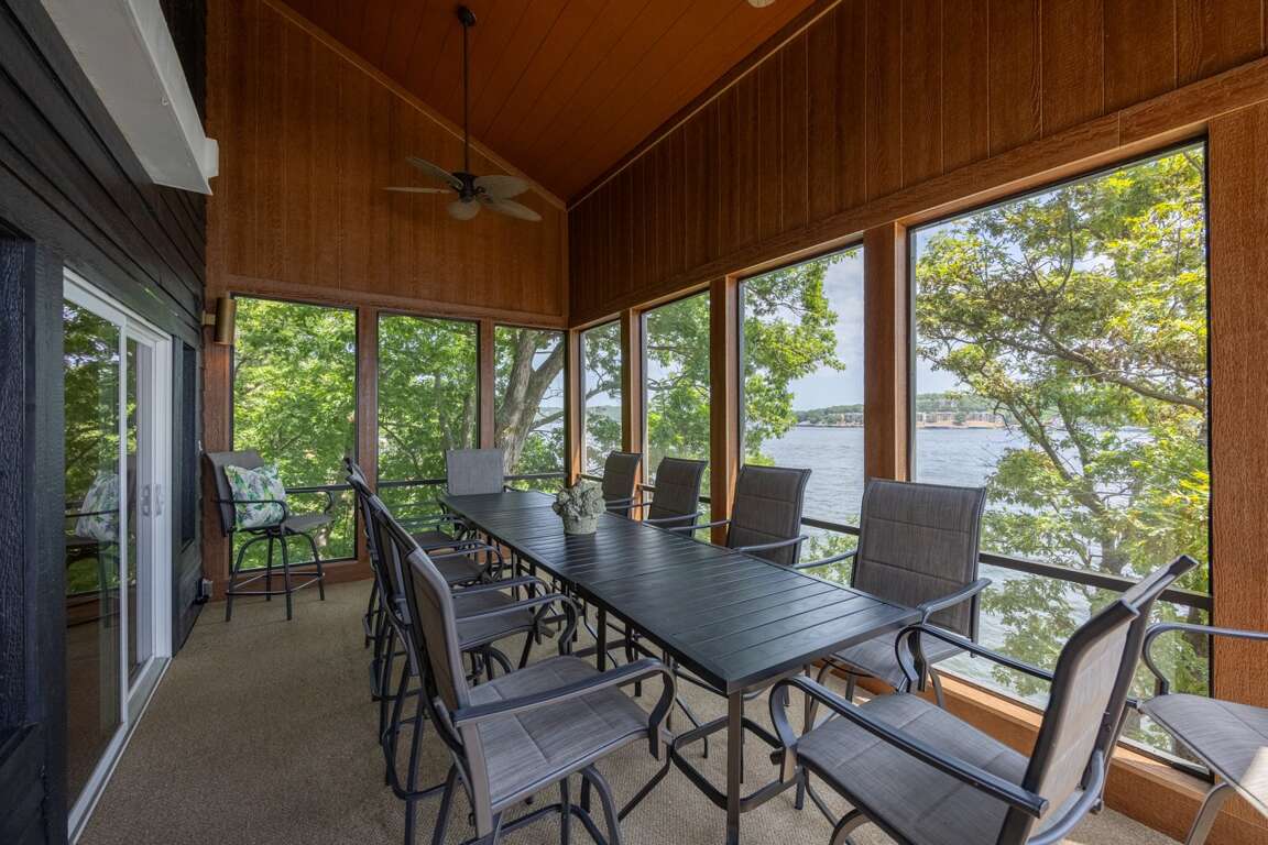 Perched atop the serene hills of Sunrise Beach, Missouri, The Viewhouse offers a luxurious retreat with breathtaking vistas of the main channel, making it an idyllic destination for a relaxing getaway. The interior design of this 5-bedroom vacation home boasts multiple master suites, each elegantly furnished for comfort and style. The fully equipped kitchen features modern appliances, including an in-wall oven, gas range, and a wine cooler, catering to culinary enthusiasts. Outdoor features include multiple decks for soaking in the panoramic views, a dock for water activities, a martini deck for unwinding, a fire pit for cozy evenings, and a hammock for lazy afternoons. Additionally, guests can enjoy various entertainment options both indoors and outdoors, ensuring a memorable stay at The Viewhouse.