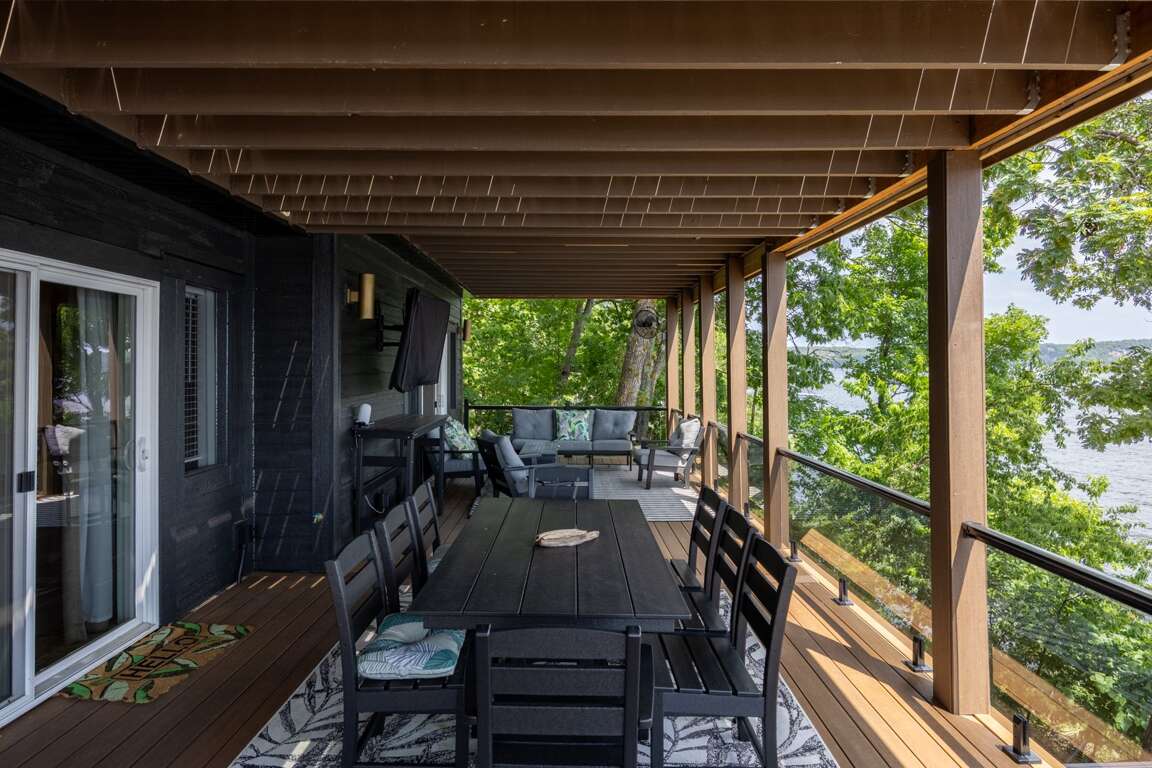 - Outdoor amenities: dock, fire pit, martini deck, hammock.
