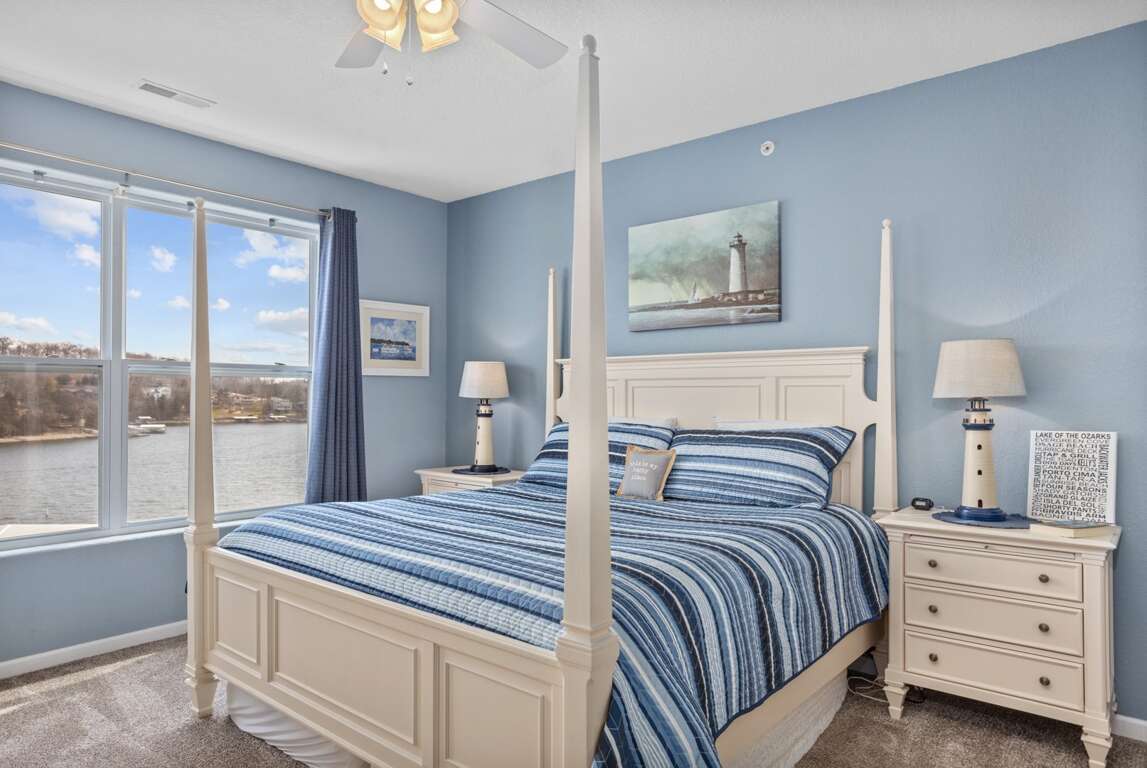 Comfortable Sleeping Arrangements: Each bedroom offers luxurious sleeping accommodations, from the lakeside King bed in the master bedroom to the additional King and Queen beds in the other rooms, ensuring a restful night's sleep for all guests.